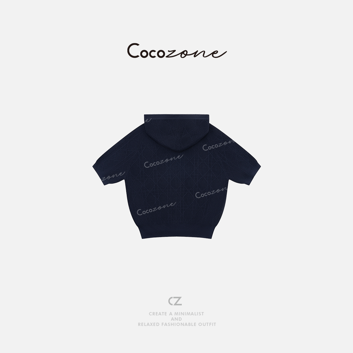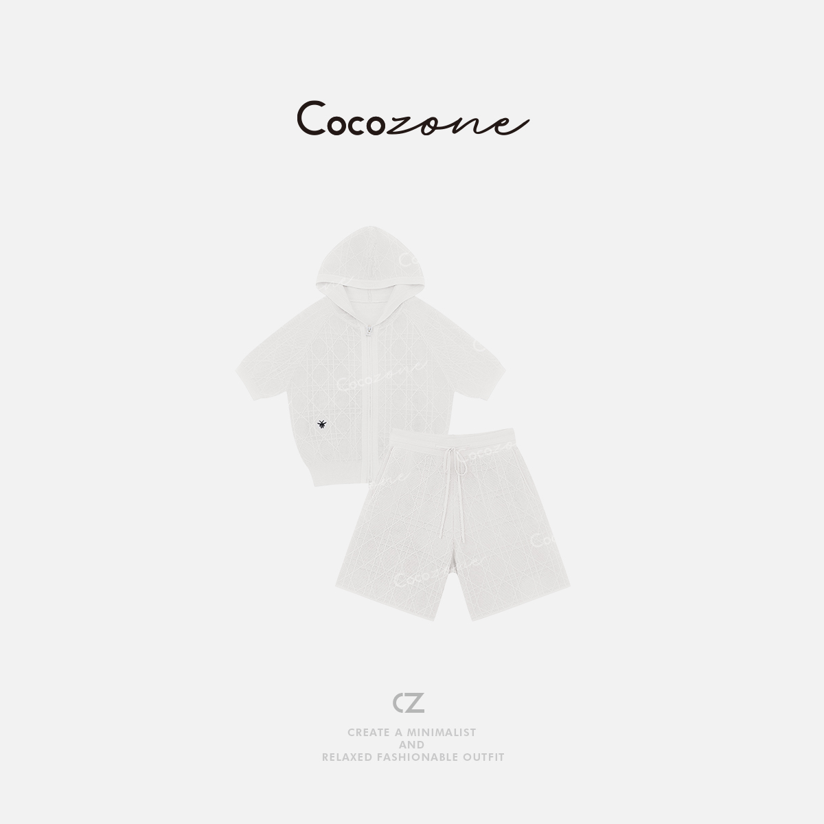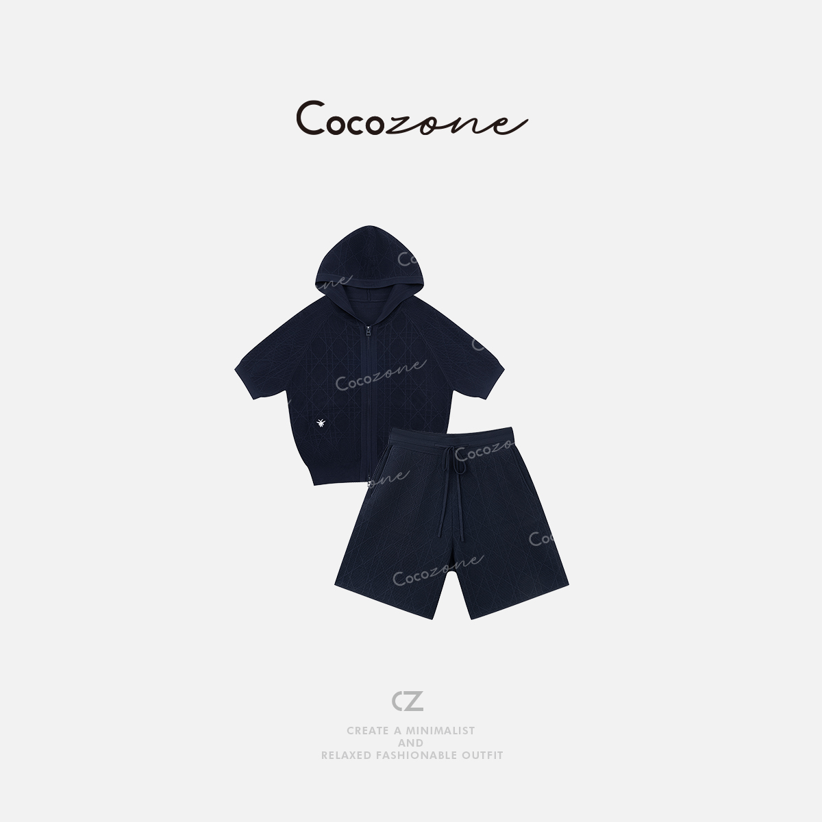 COCO ZONE 刘一一【人丝混纺】菱形格纹连帽短袖+短裤套装CD2A1288