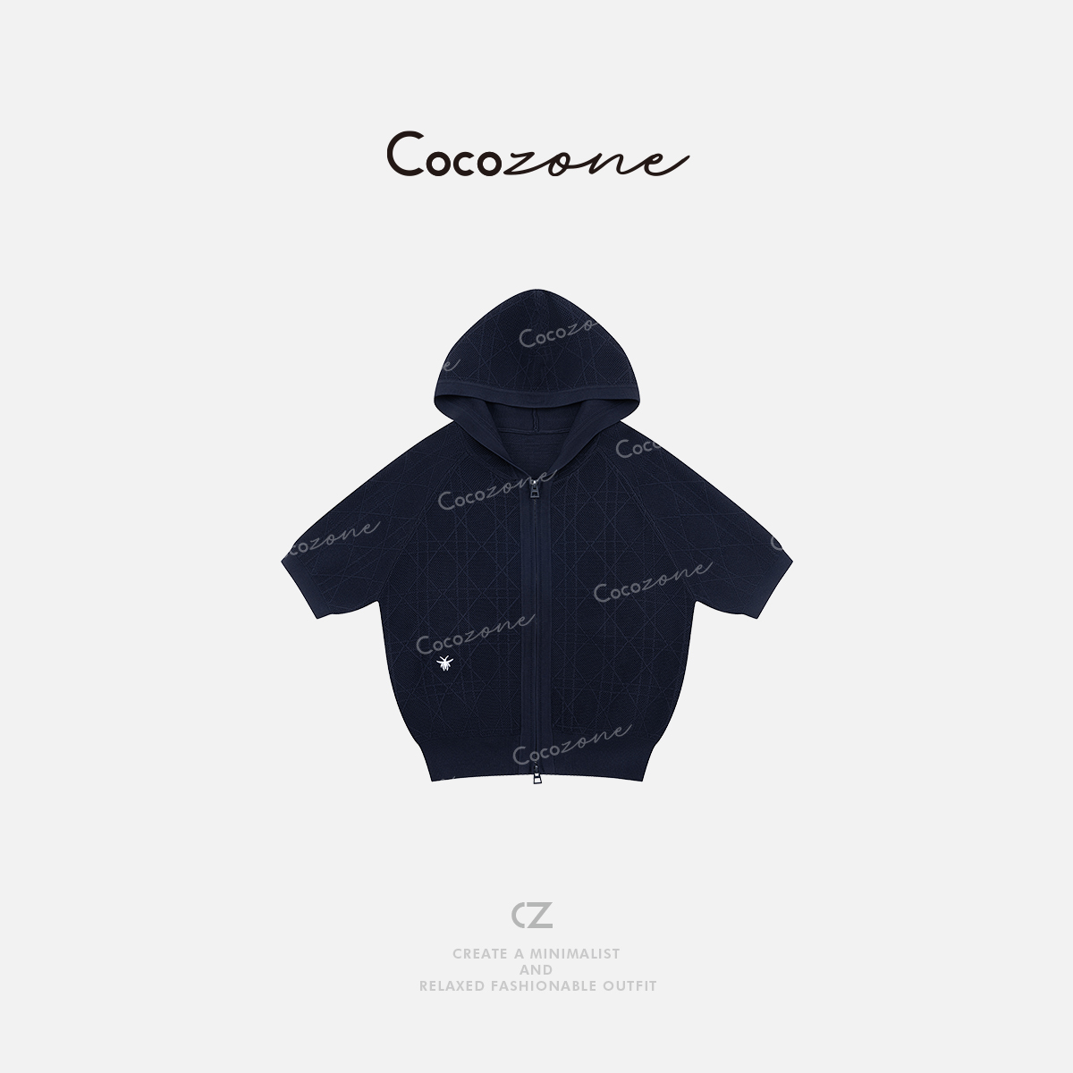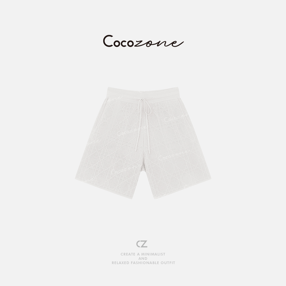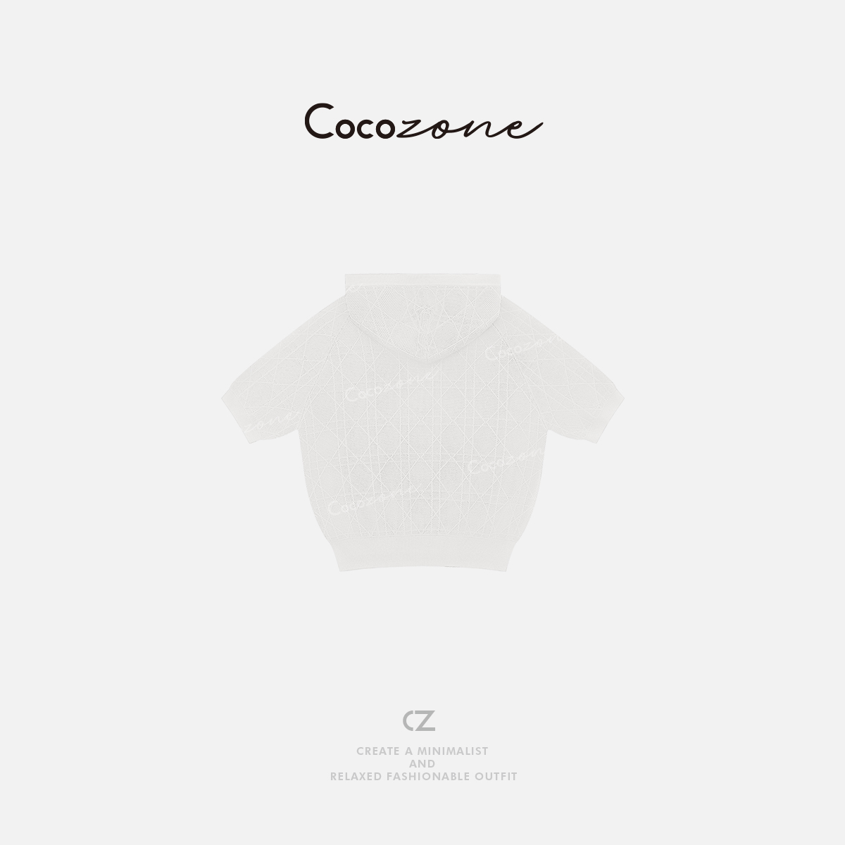COCO ZONE 刘一一【人丝混纺】菱形格纹连帽短袖+短裤套装CD2A1288