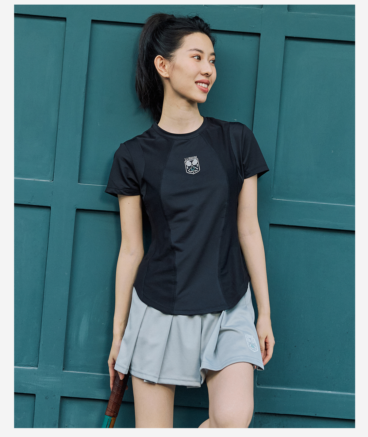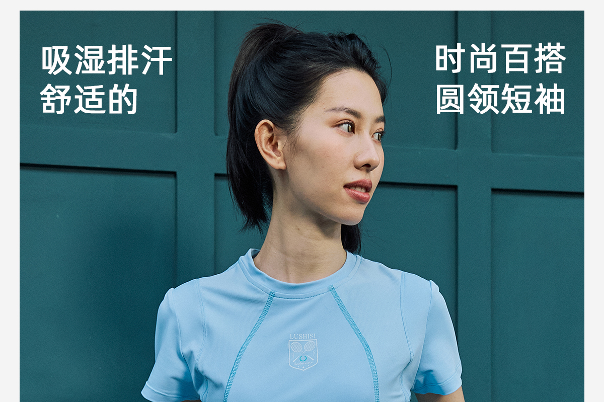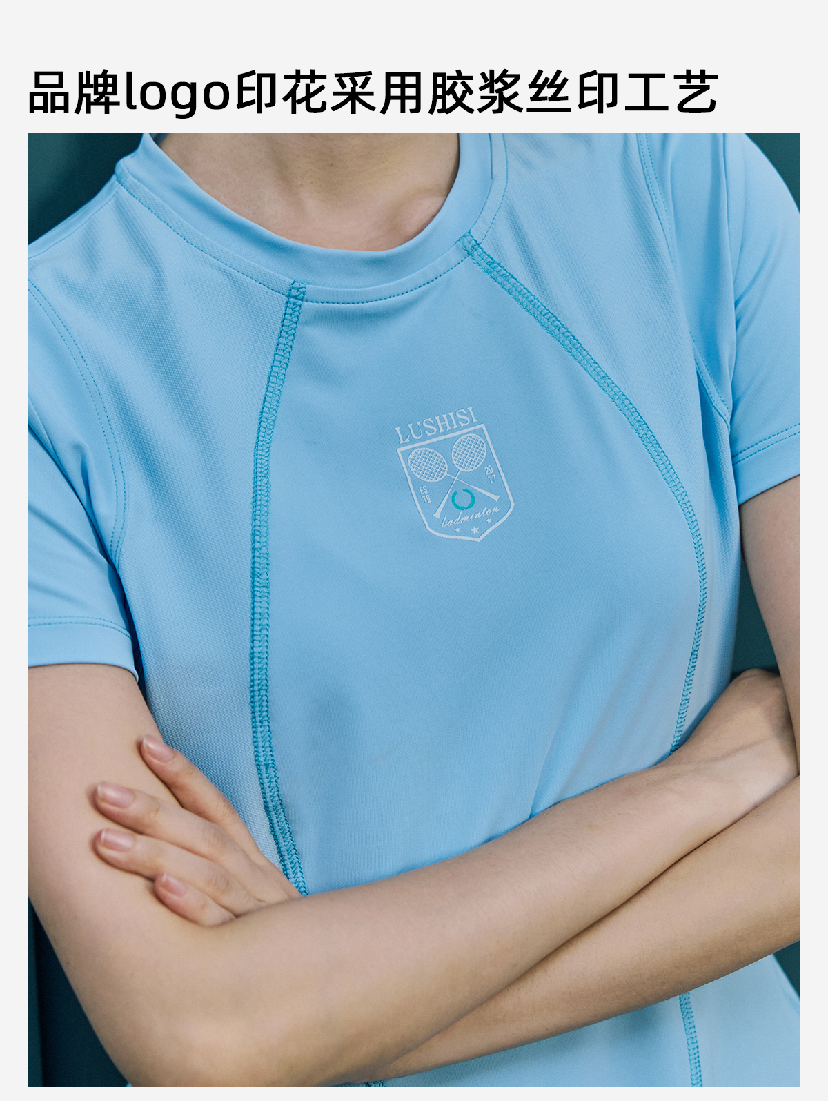 LUSHISI羽弦主题短袖吸湿排汗运动训练耐磨修身线条羽毛球t恤女