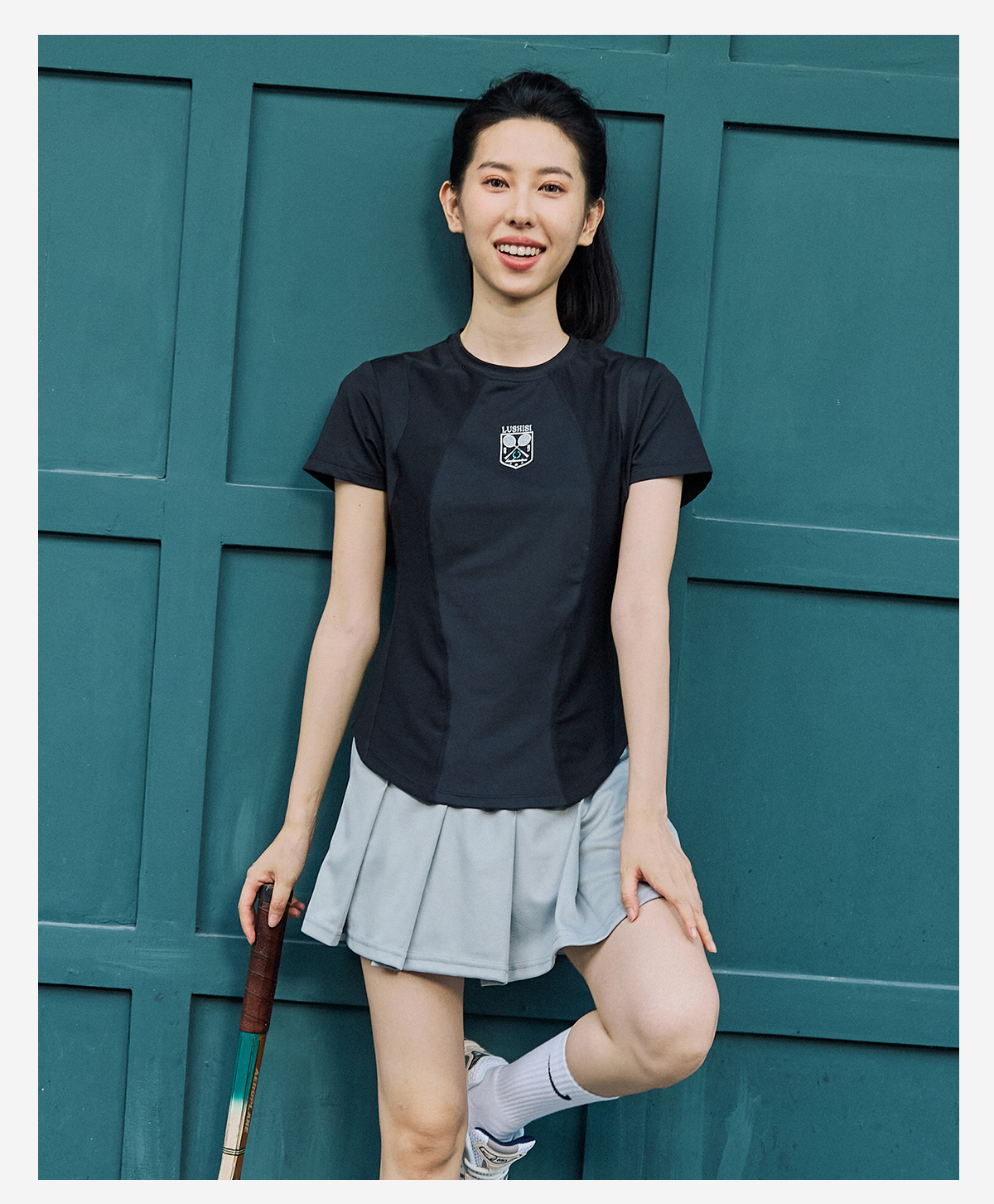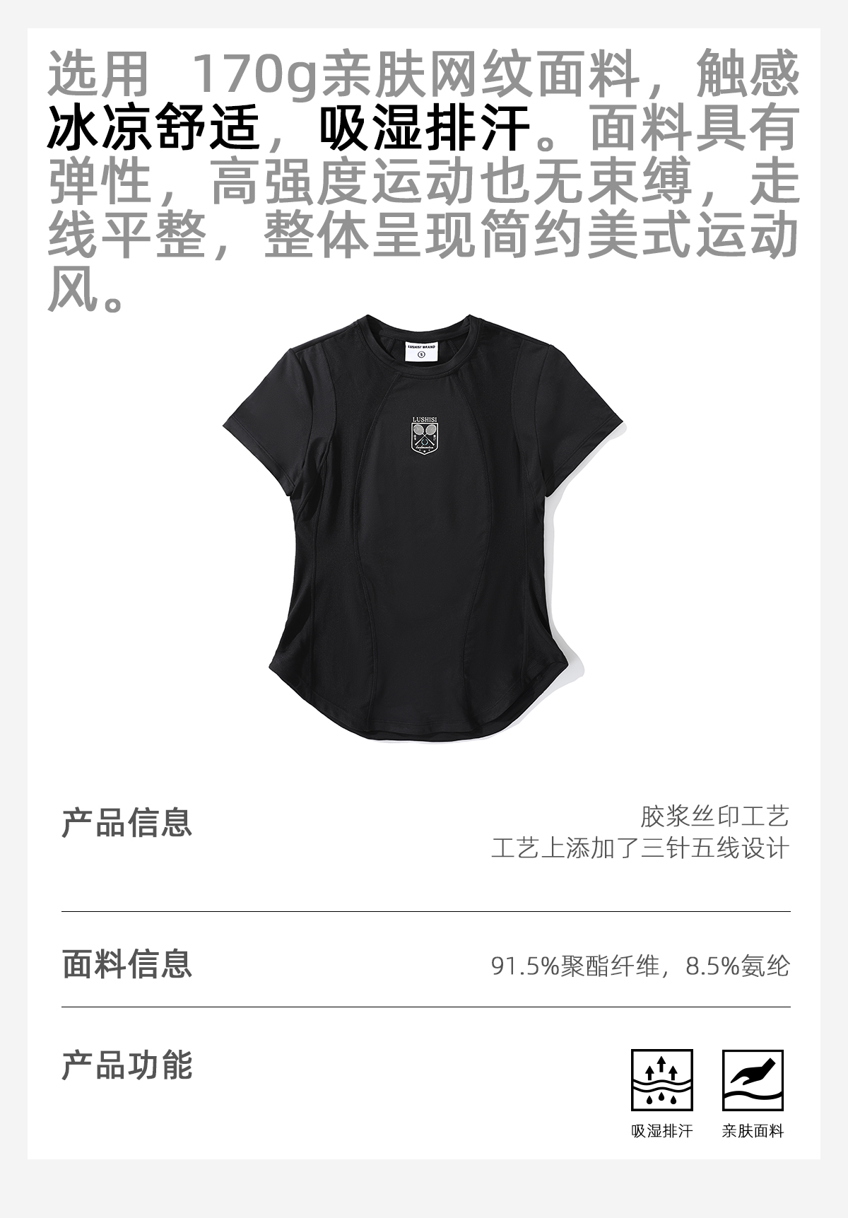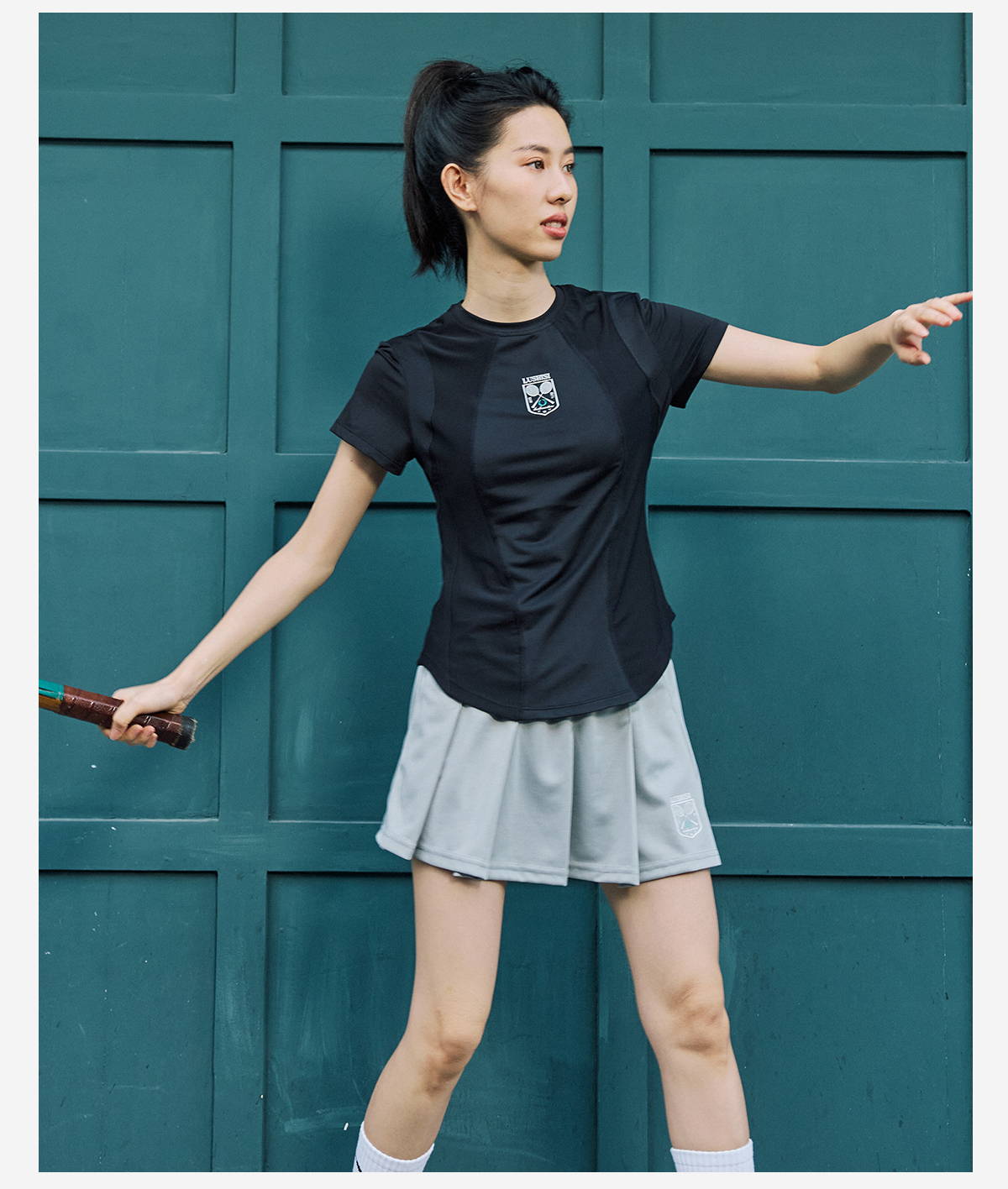 LUSHISI羽弦主题短袖吸湿排汗运动训练耐磨修身线条羽毛球t恤女