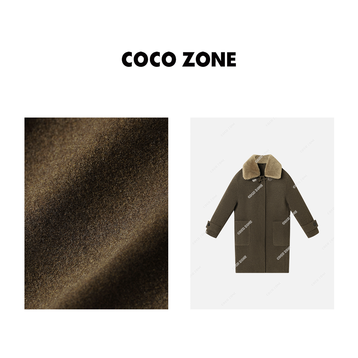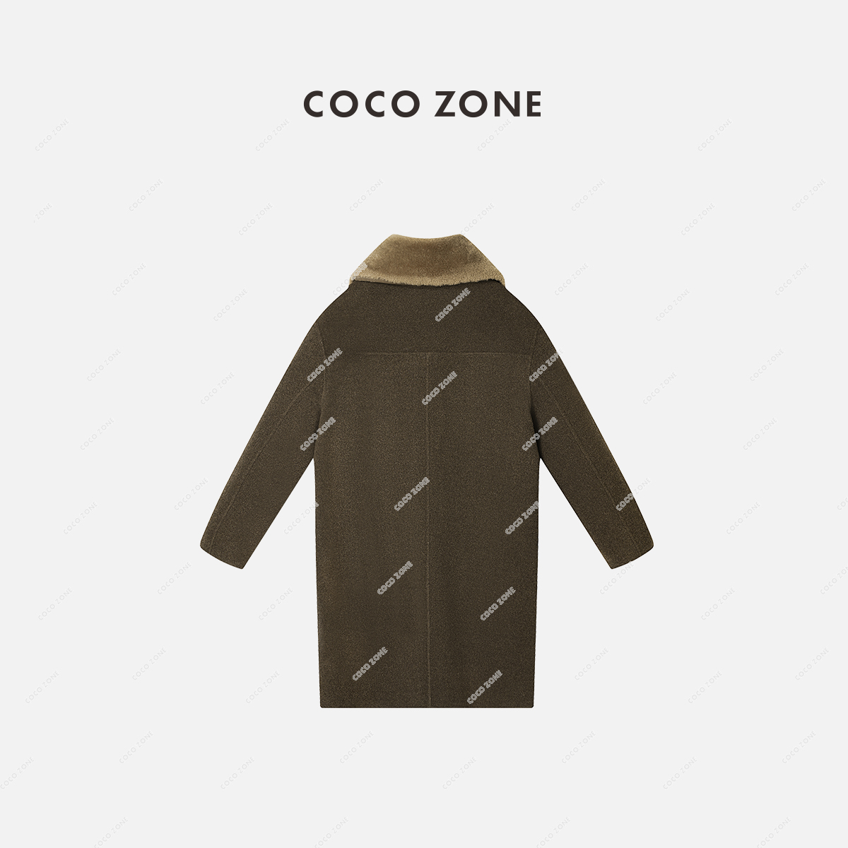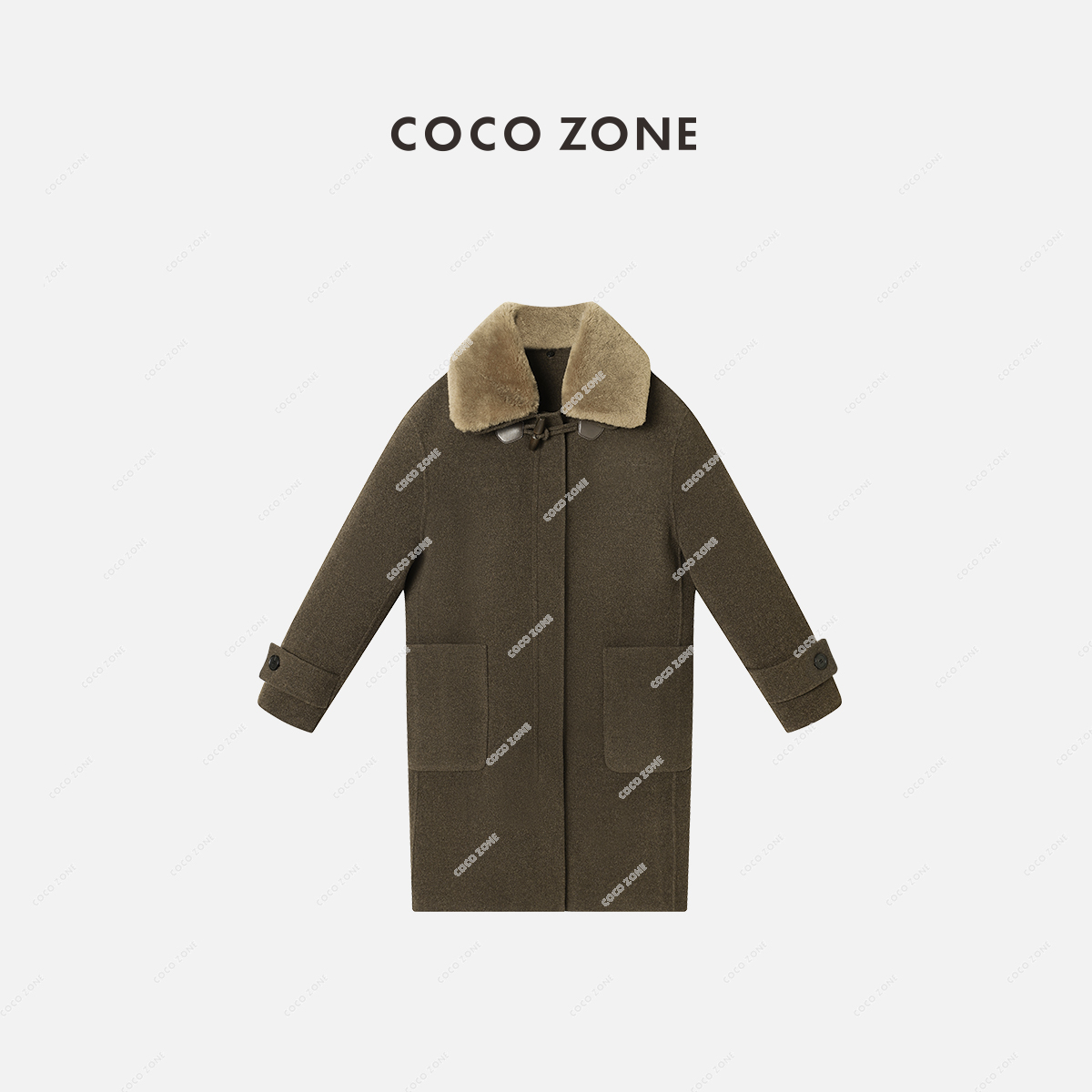 COCO ZONE美拉德秋冬气质大衣拉链可拆毛领毛呢外套23C19866