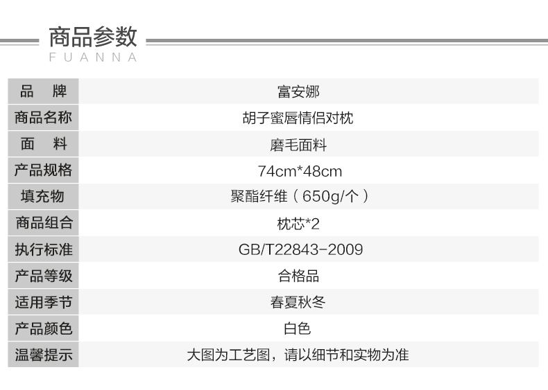 富安娜胡子蜜唇情侣对枕 74*48cm*2