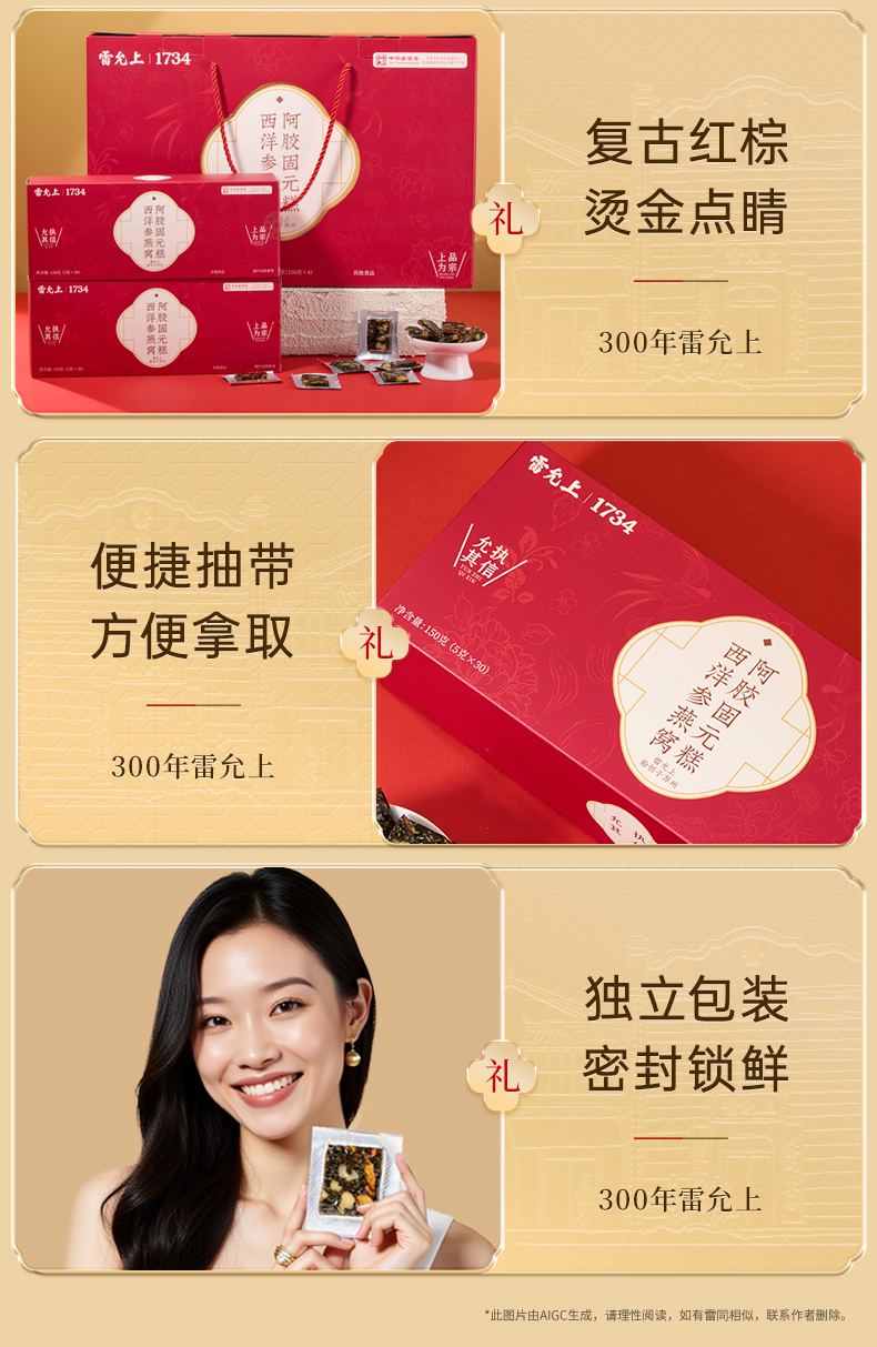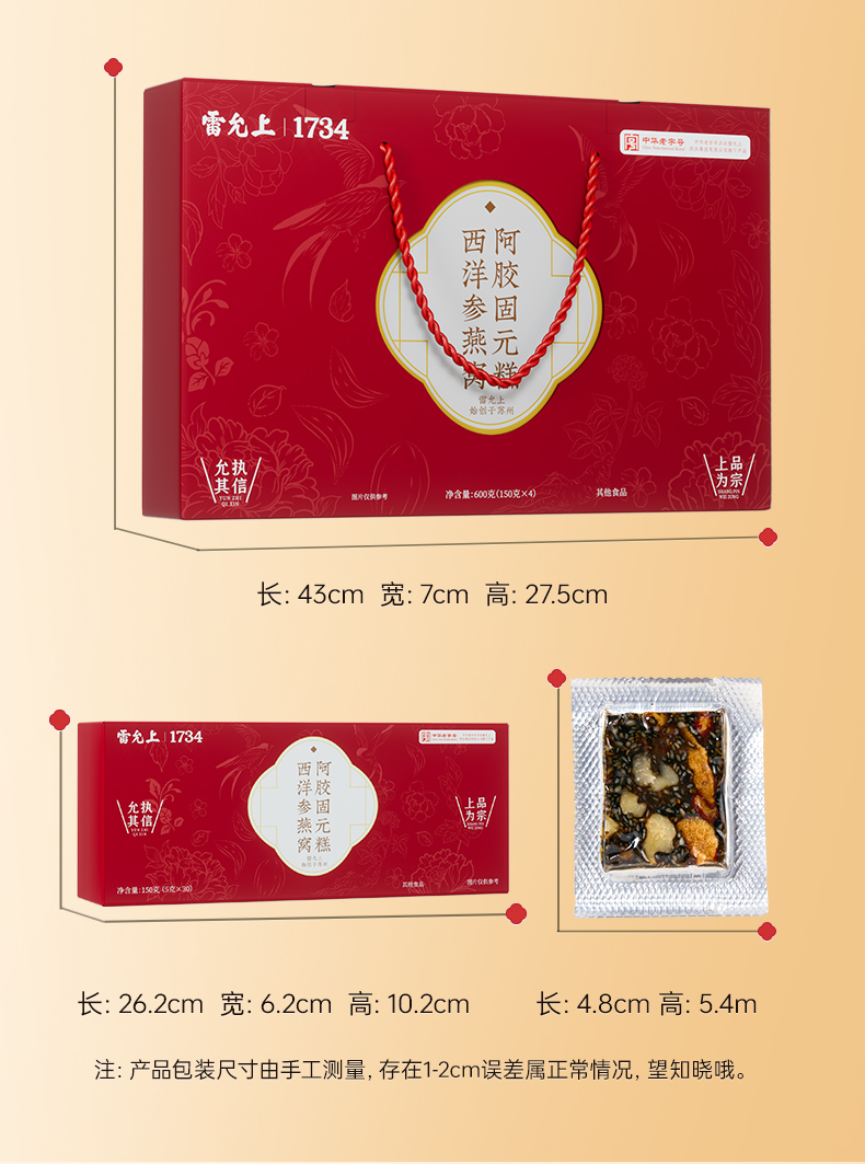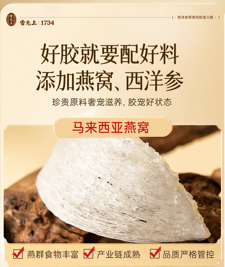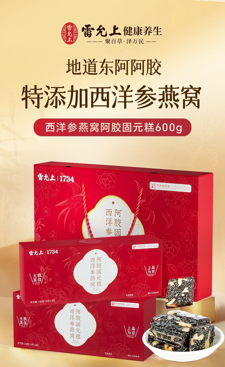 雷允上西洋参燕窝阿胶固元糕600g(150g*4盒)/盒