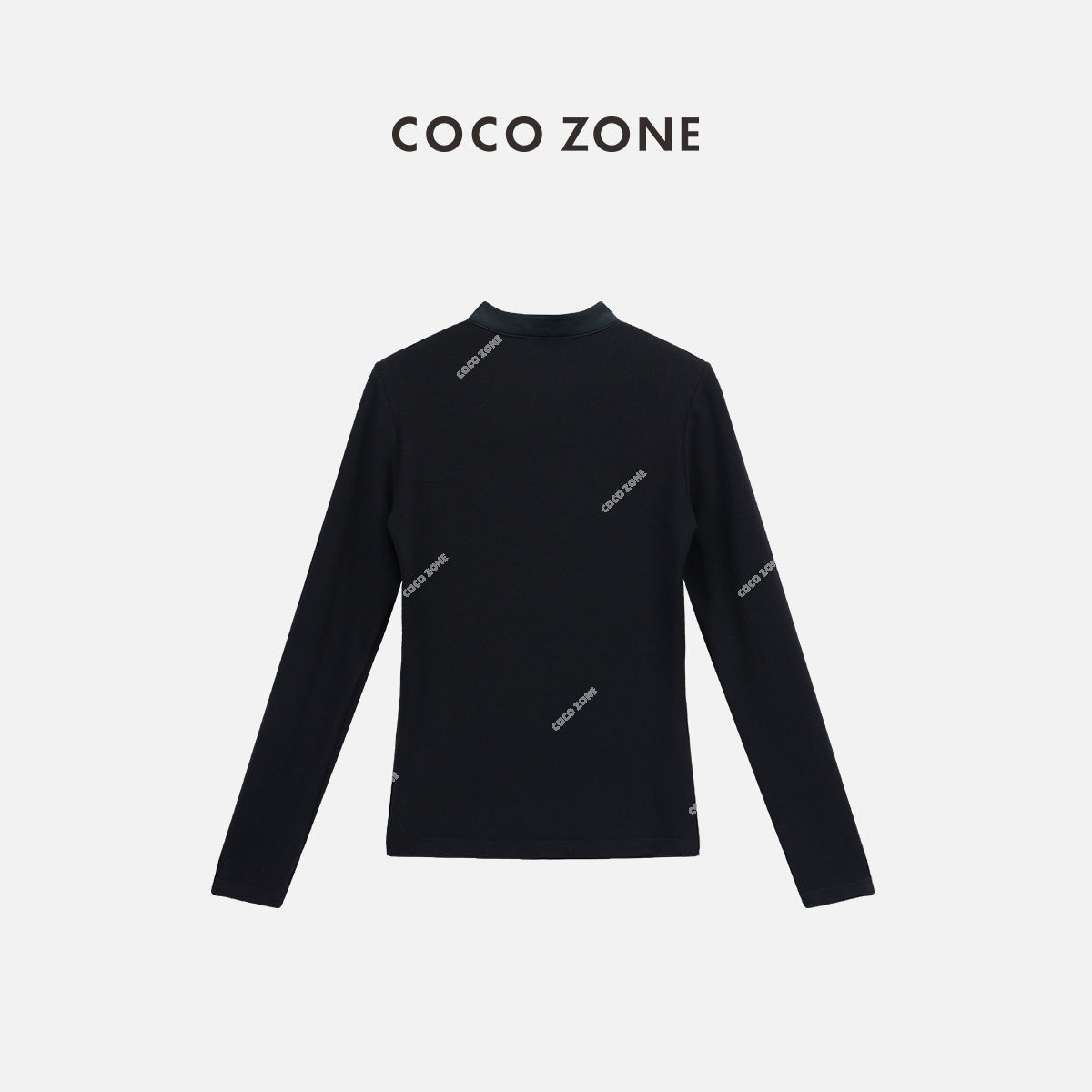 COCO ZONE 新中式国风盘扣立领打底衫百搭长袖上衣24C10355
