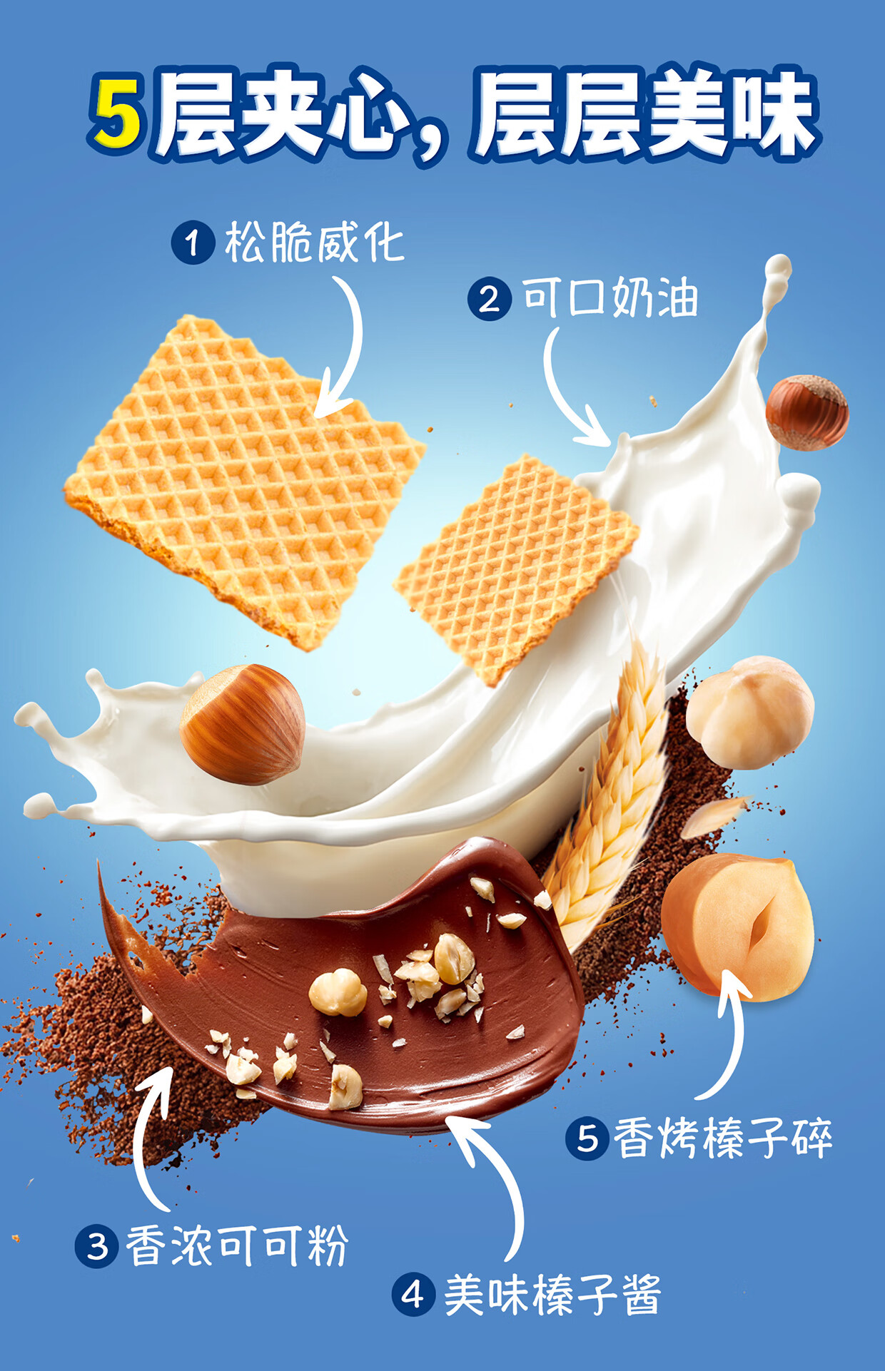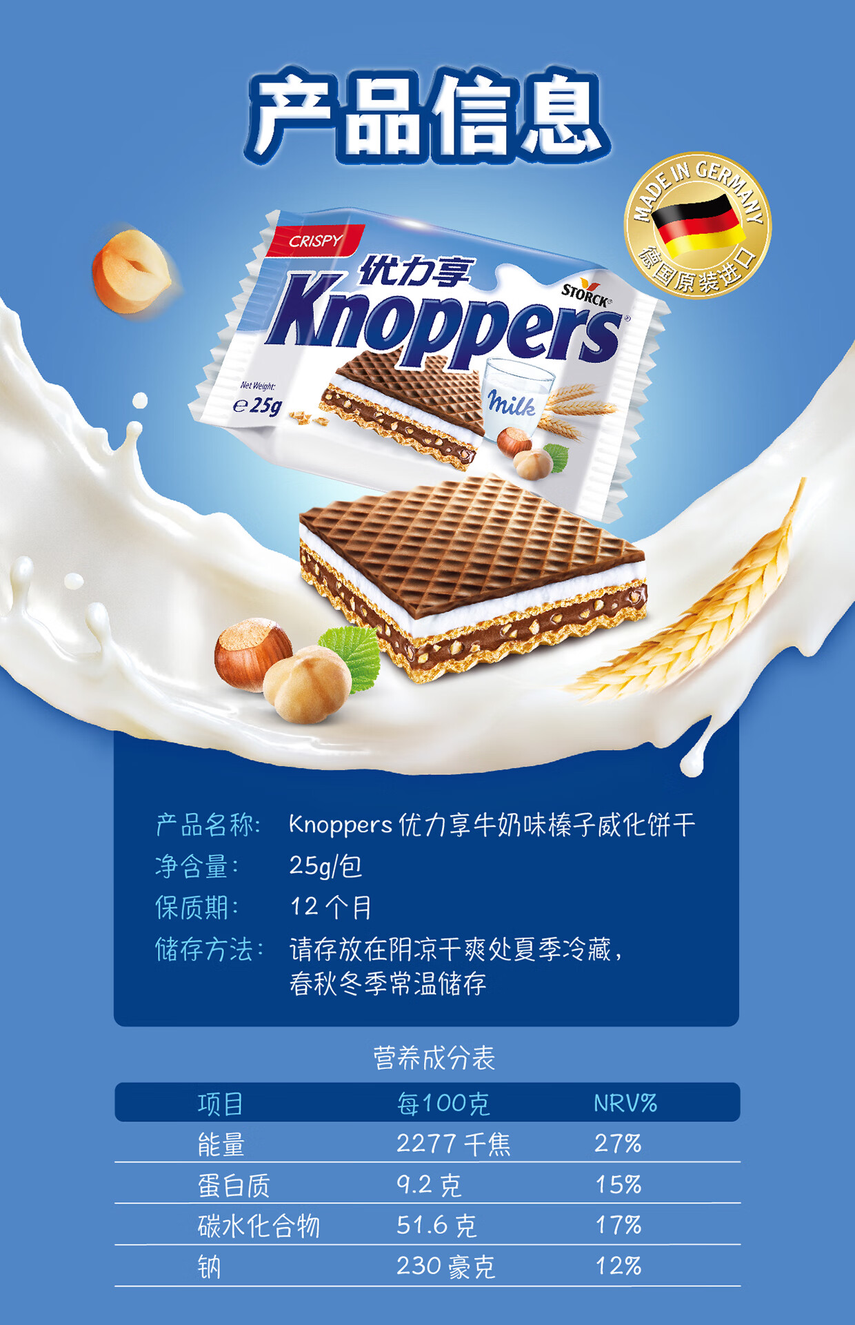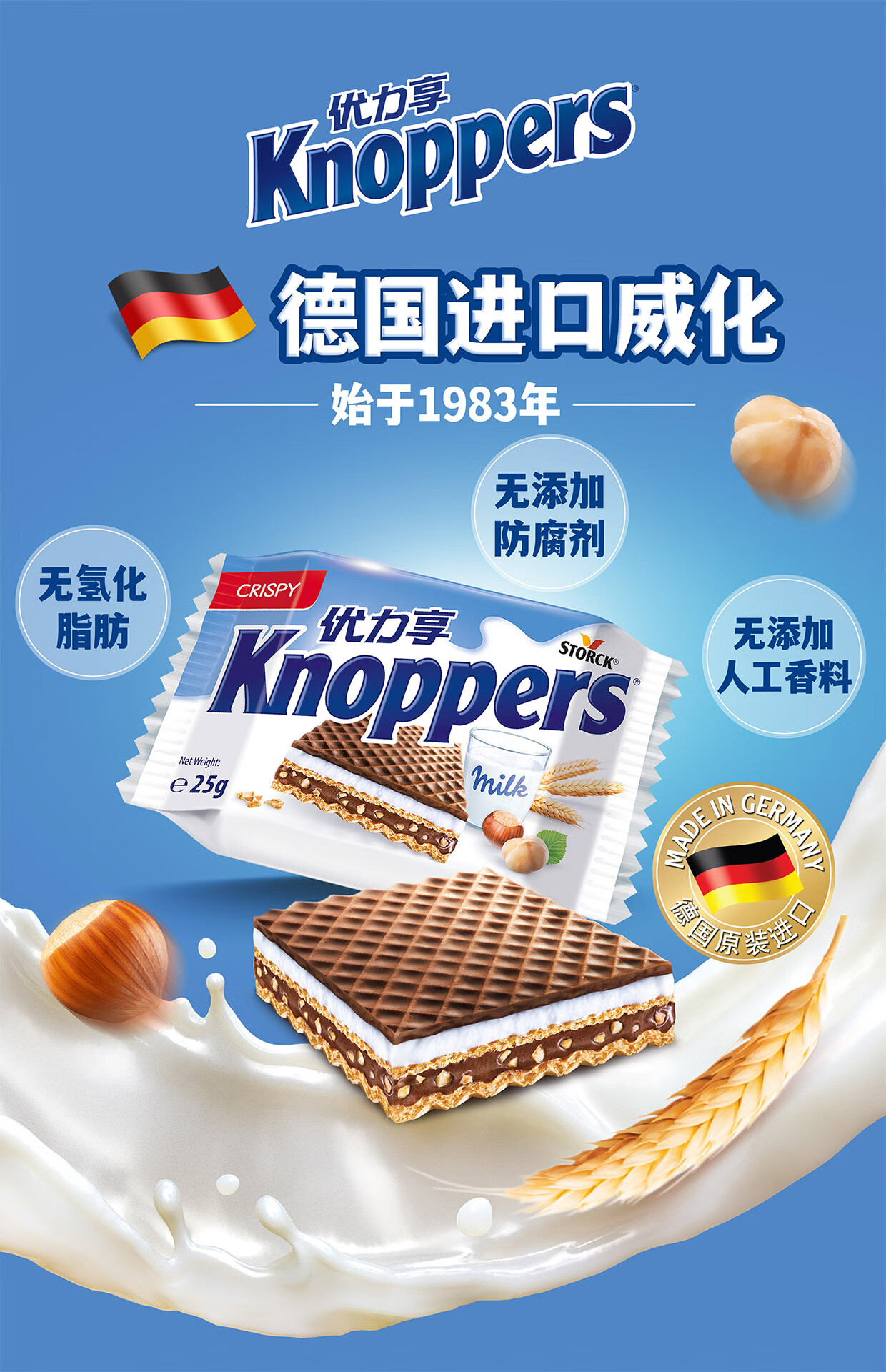 knoppers优力享 德国进口 牛奶巧克力威化饼干5包125g