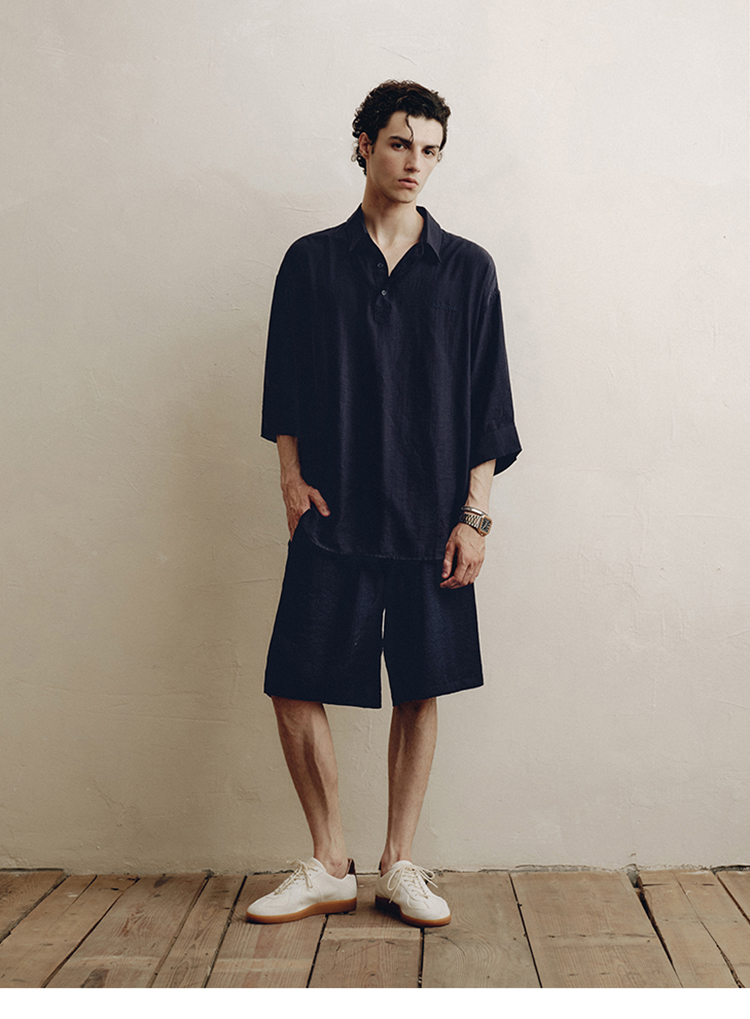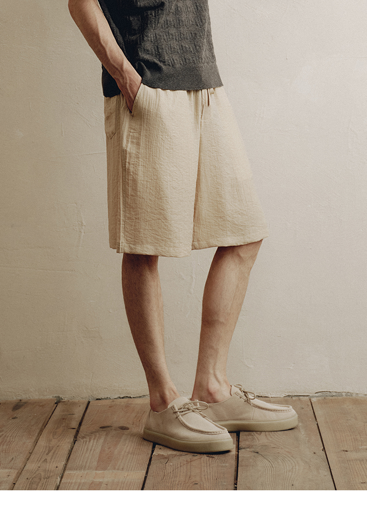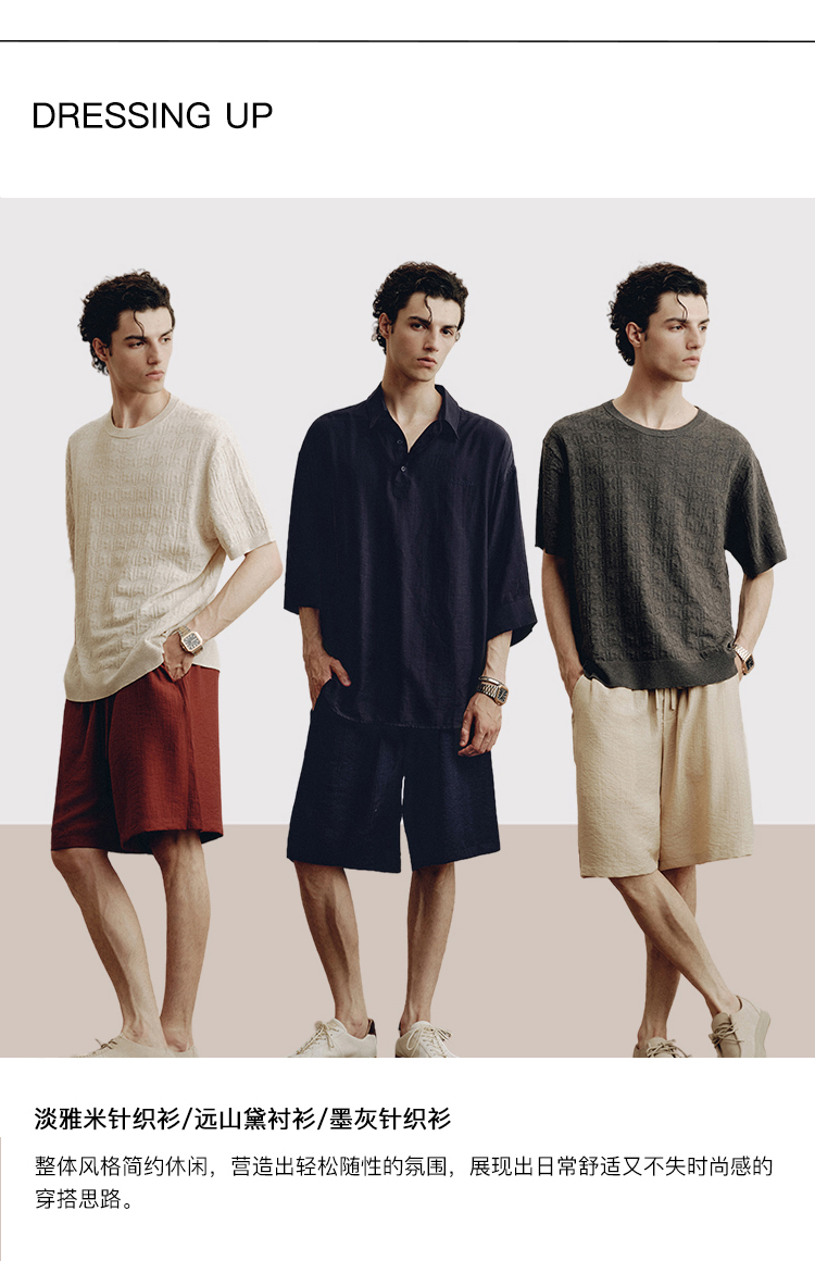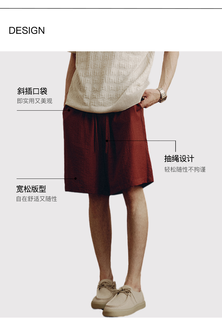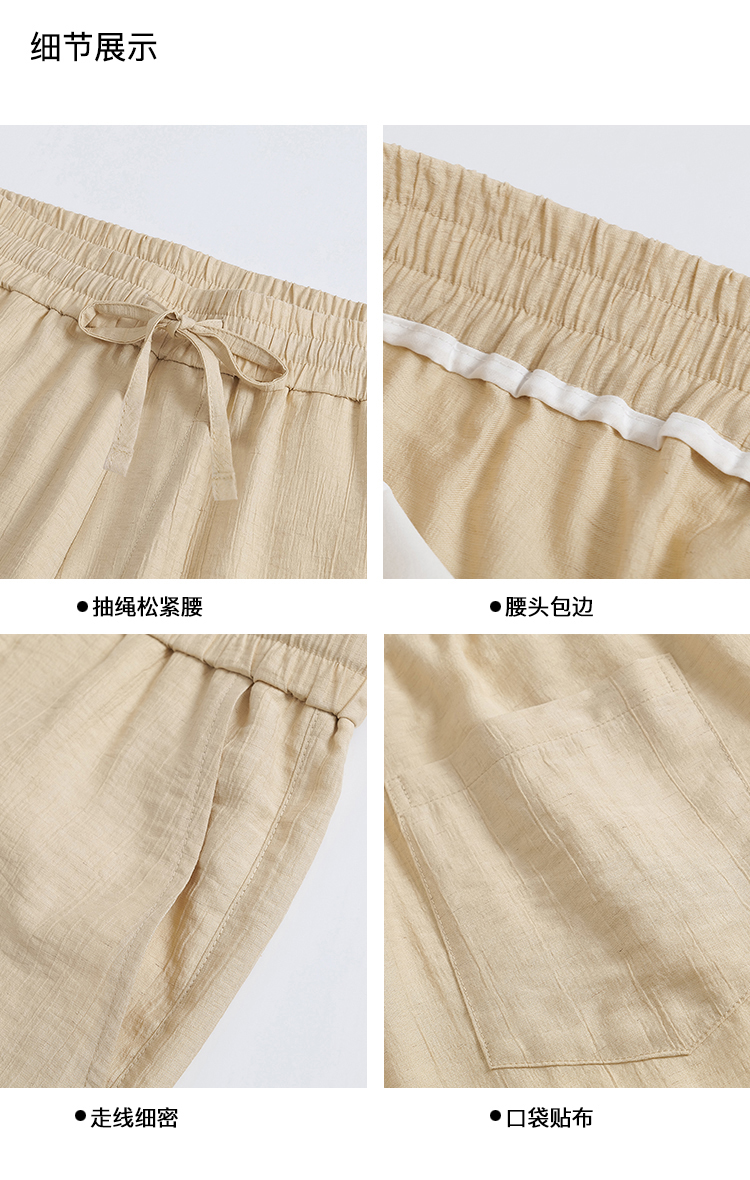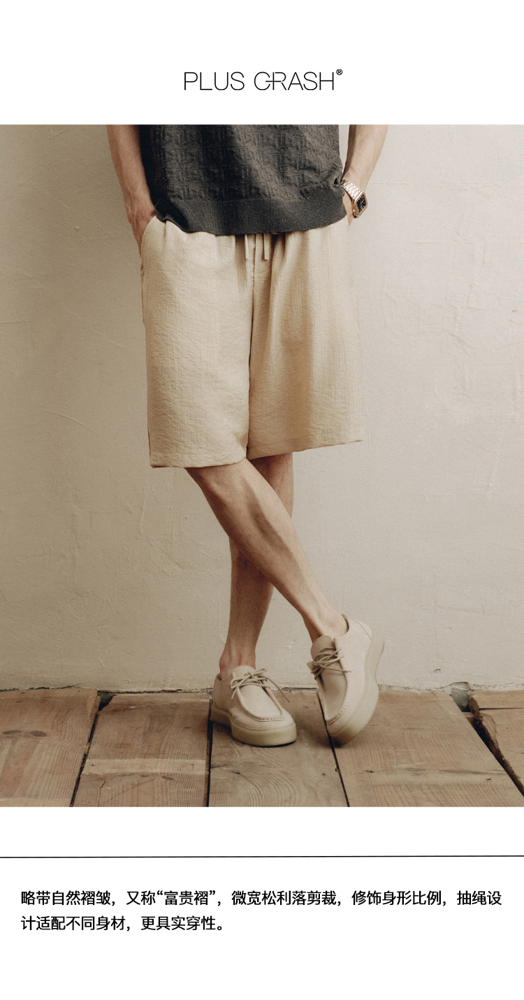 PLUS CRASH港风休闲极简设计轻薄透气亚麻短裤百搭复古夏季五分裤