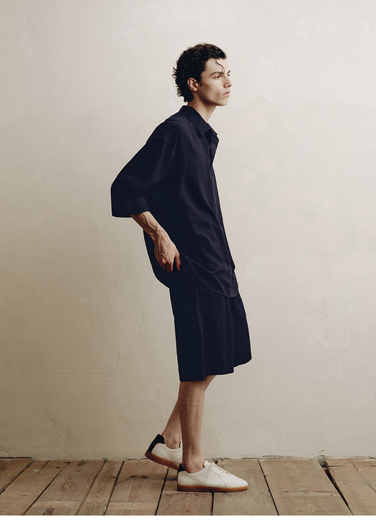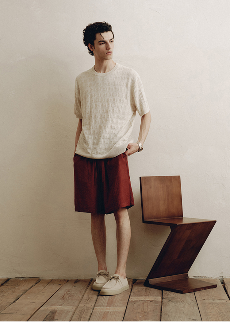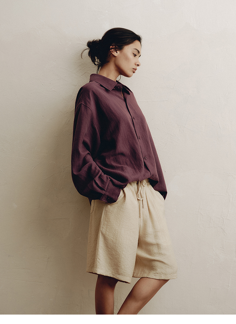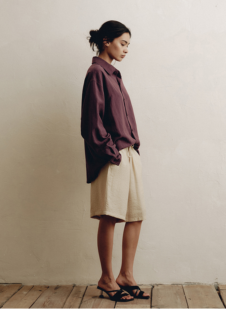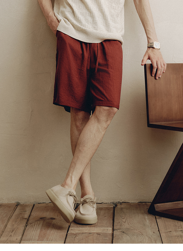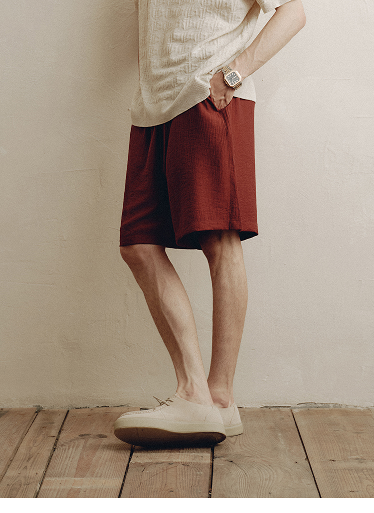 PLUS CRASH港风休闲极简设计轻薄透气亚麻短裤百搭复古夏季五分裤