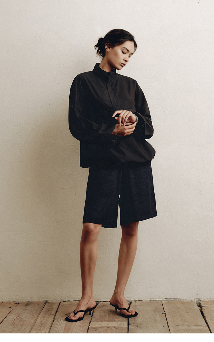 NPC潮牌立体剪裁泡泡纱格纹衬衫男翻领落肩垂感新款NP57SH03