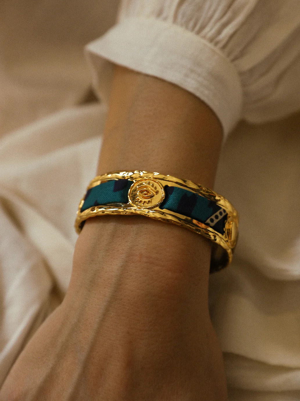 订购14周到|AN-NEE-IRMA-棕绿色 夏帕诺瓦 1cm 丝巾手镯[法国设计师]