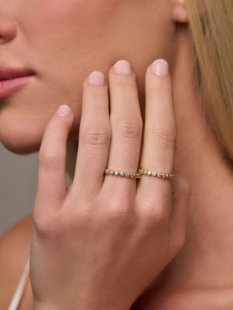 订购8周到|Lili Claspe-Reese-瑞茜 金色 迷你 叠叠乐 锆石 戒指[美国设计师]