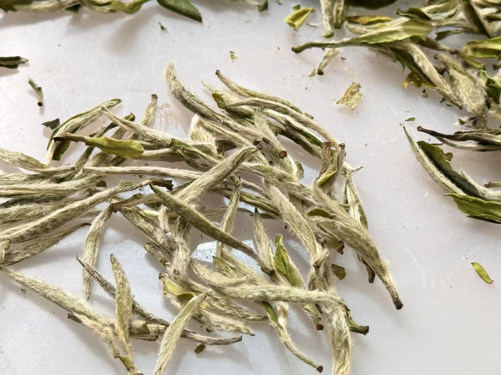 这是名副其实的牡丹针级别,也是比较接近银针的等级了。很多做茶的同行去拿货,这种品质、等级,这个价格也拿不到。