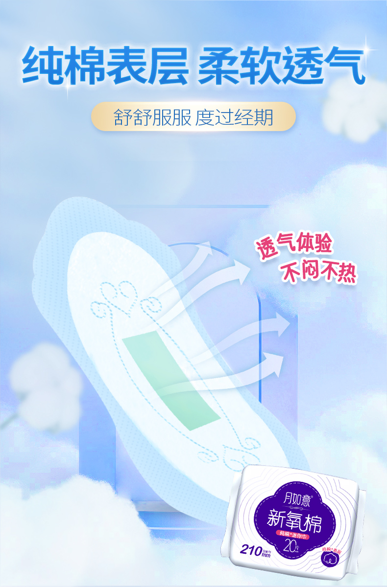 月如意卫生巾 新氧棉系列单包迷你210mm*20片