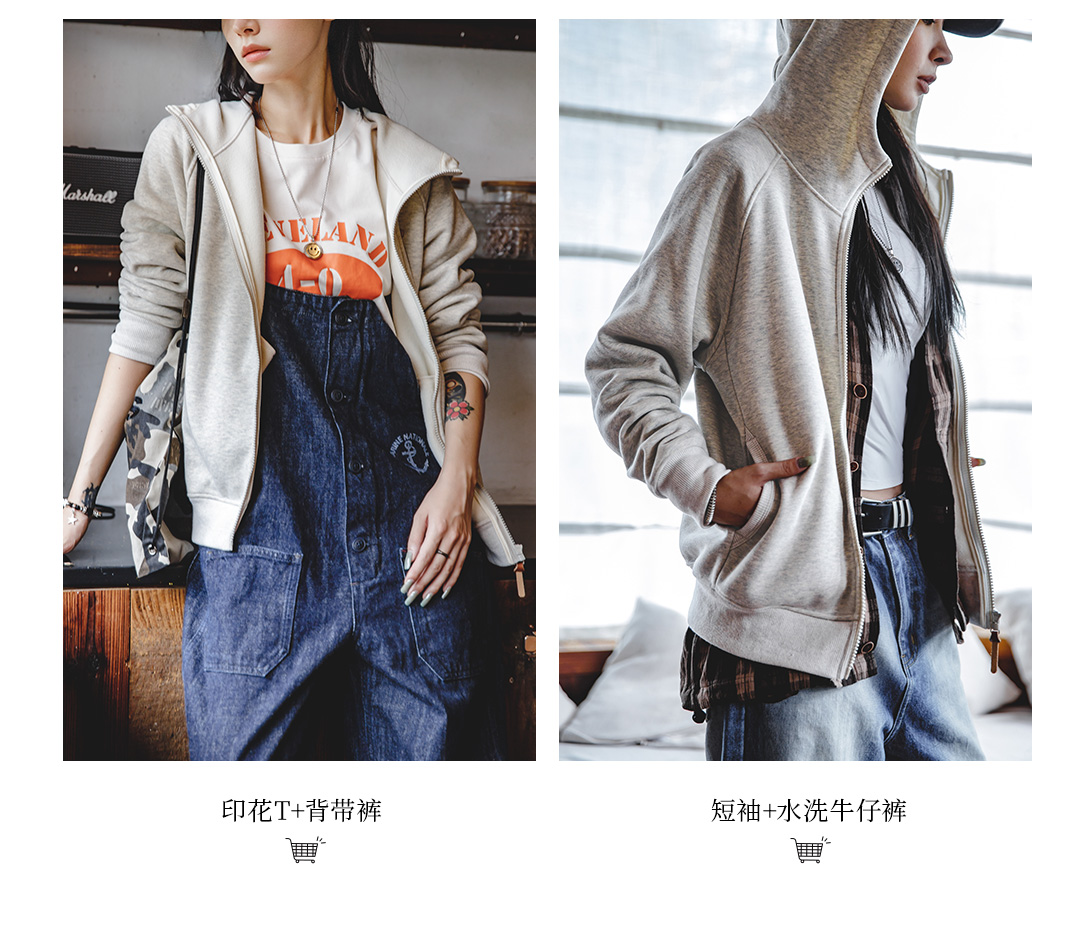 马登女装美式休闲摇粒绒连帽卫衣内搭加绒加厚保暖外套上衣秋冬