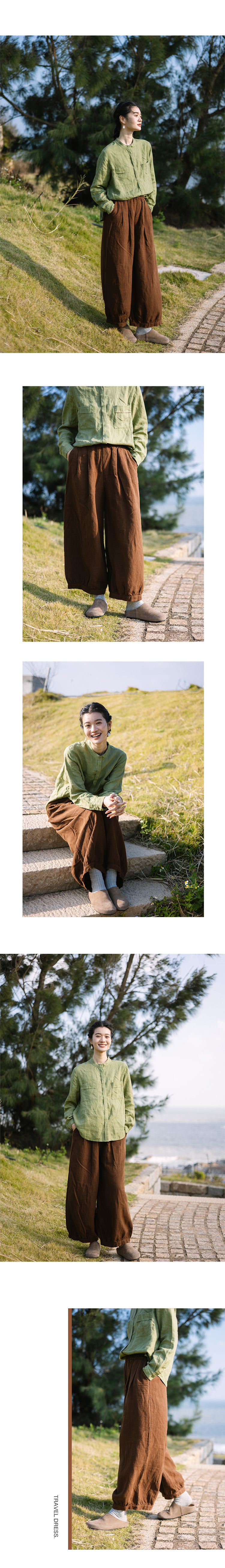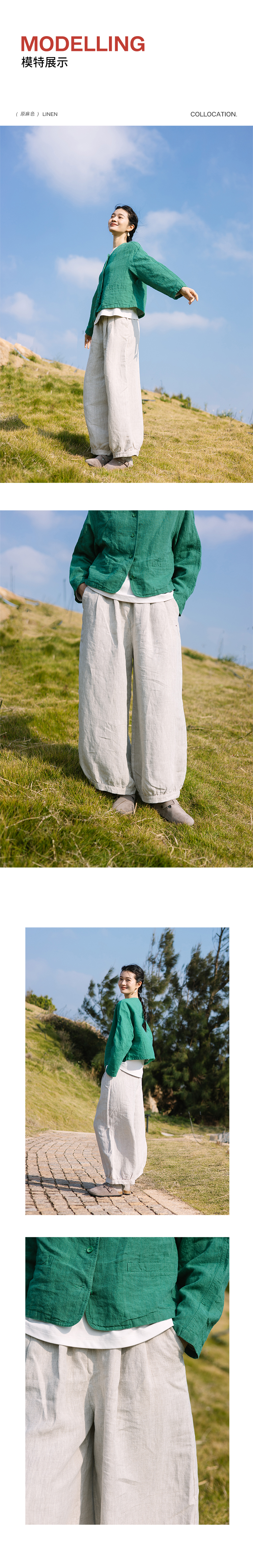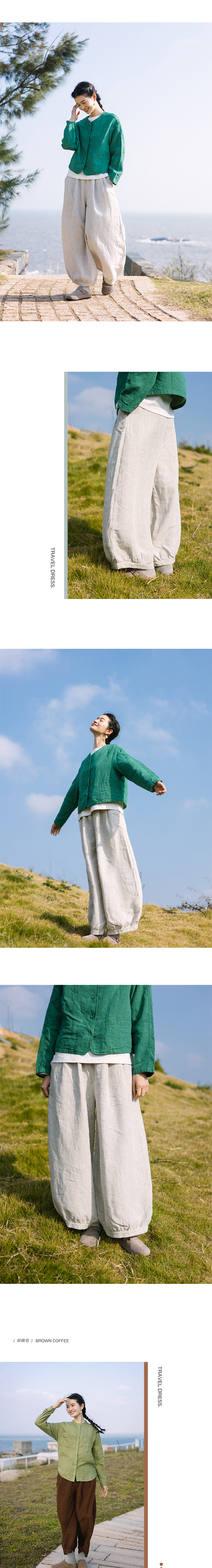绽放旅行女装052朵/春季新款女100亚麻灯笼裤宽松显瘦文艺休闲裤