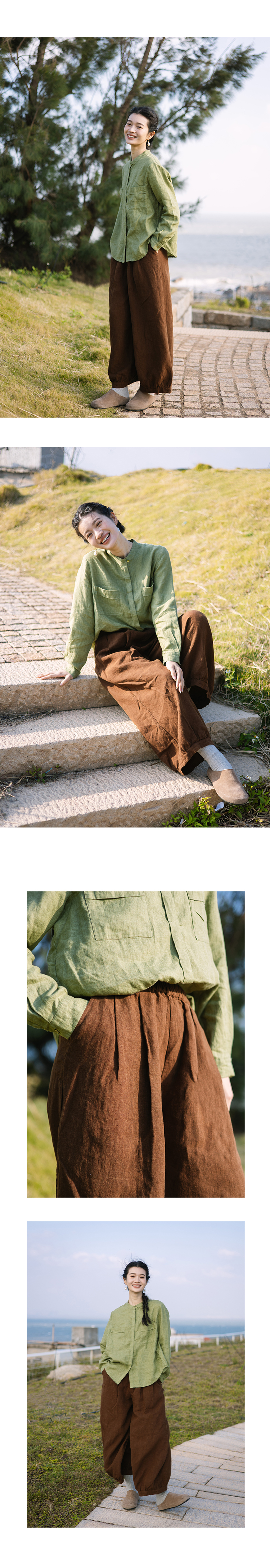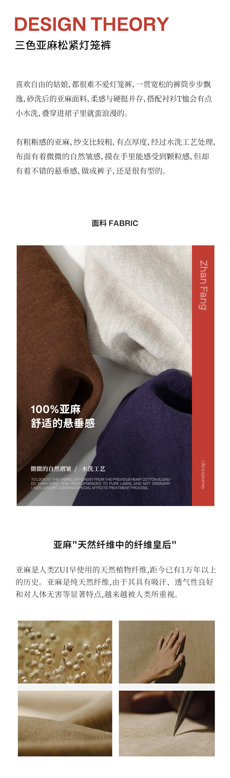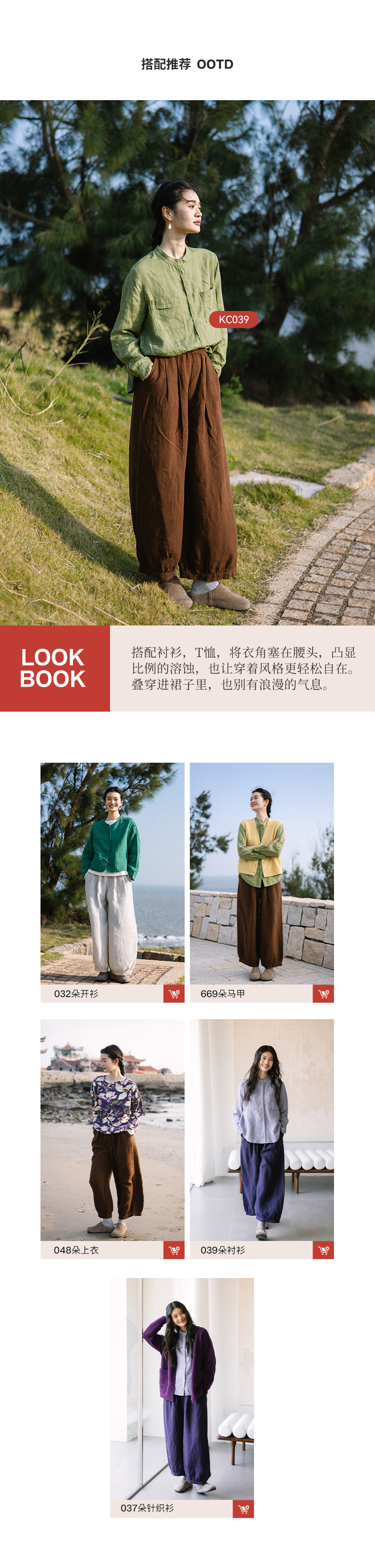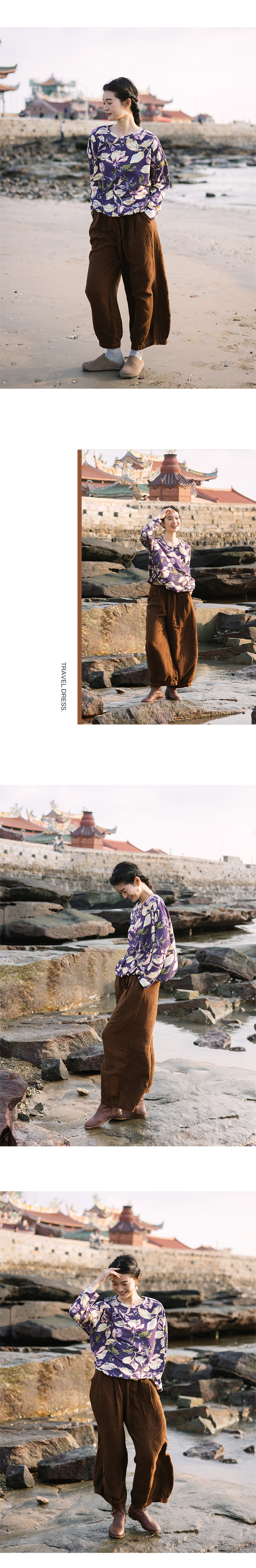 绽放旅行女装052朵/春季新款女100亚麻灯笼裤宽松显瘦文艺休闲裤