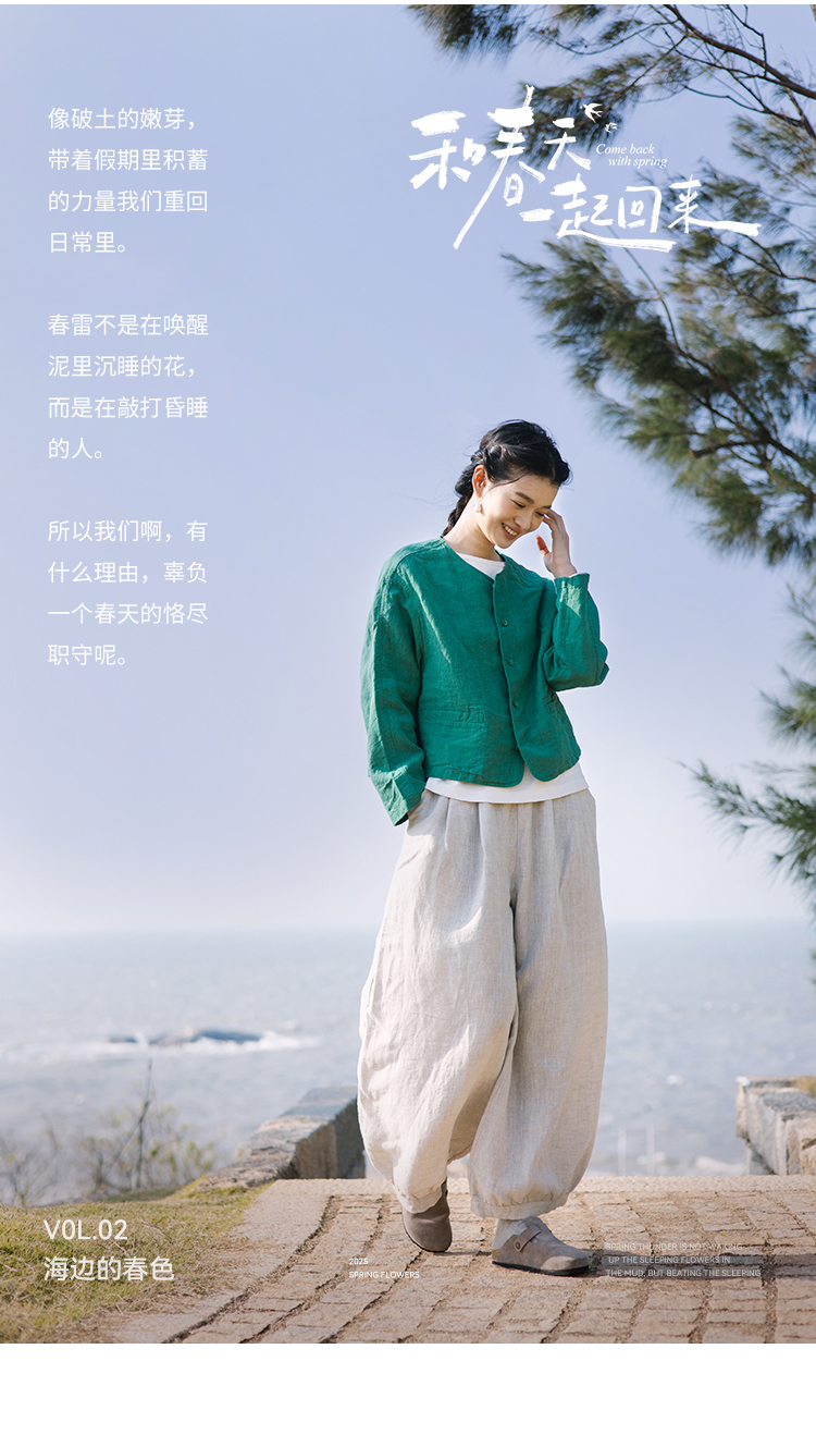 以天然亚麻为载体,融合热烈色彩与自在剪裁为身在城市、心怀远方的女性提供兼具美学与舒适的旅行着装