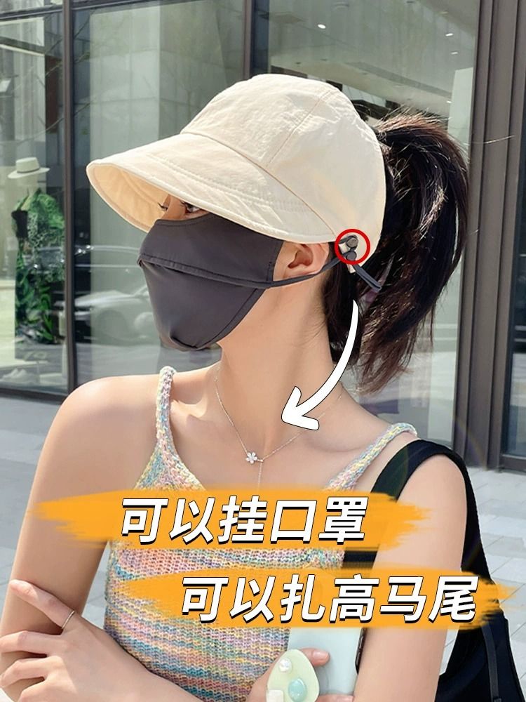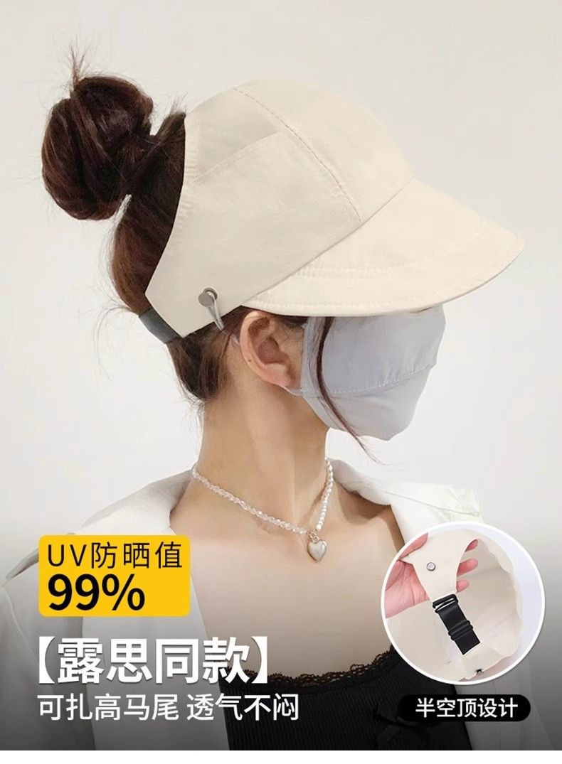 赵露思同款遮阳防晒帽子女夏季户外冰丝空顶太阳帽新款鸭舌渔夫帽