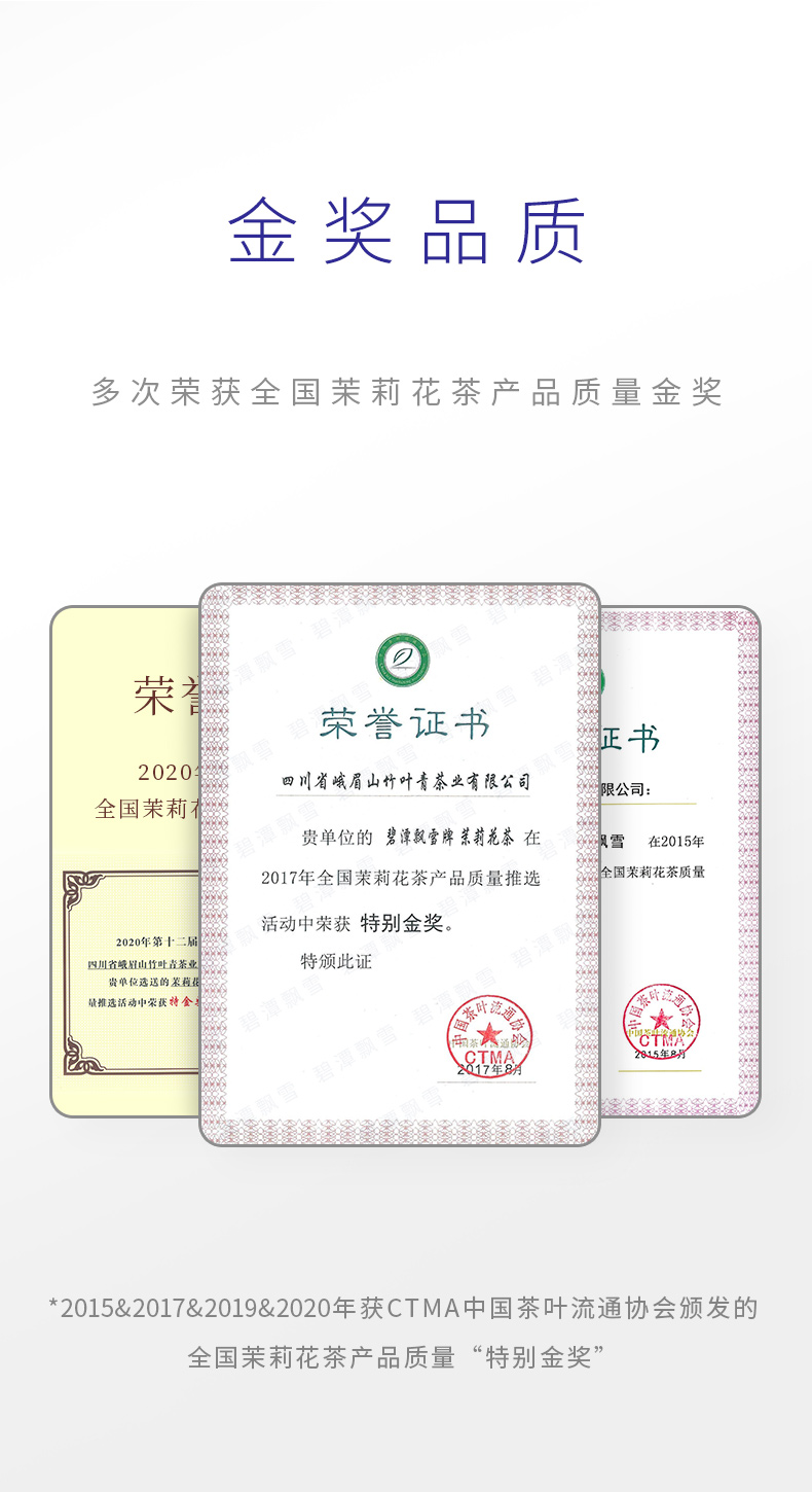 中国制茶大师徐金华(徐公)传承 古方制作技艺 开创新派茉莉花茶 精选峨眉高山明前春茶 配以广西横县双瓣茉莉 花与茶,黄金配比 时间酝酿,层层历练 花香与茶香交融 盖碗之间 仿佛茉莉花在舌尖绽放