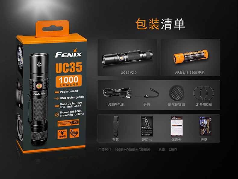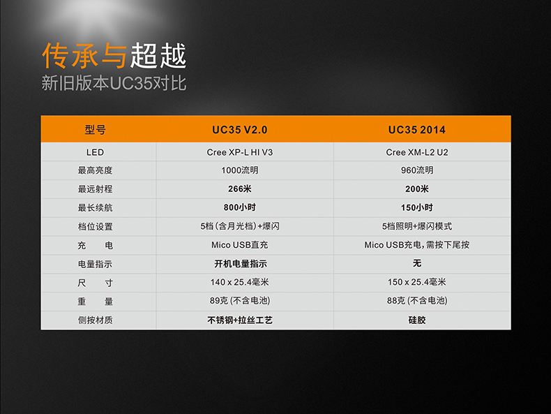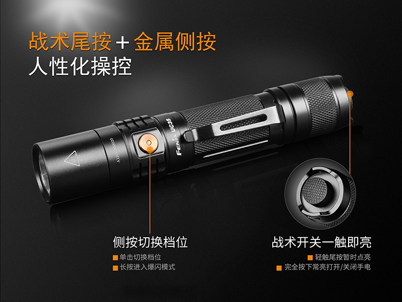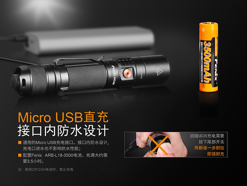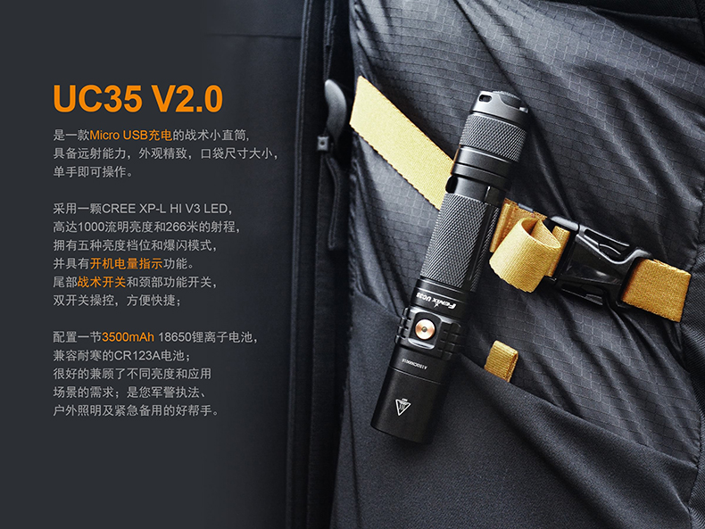 FENIX菲尼克斯UC35 V2.0 1000流明USB直充电强光手电筒户外骑行