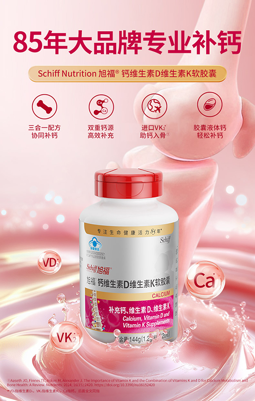 Schiff旭福液体钙维生素D3VK2柠檬酸钙中老年孕妇青少年补钙120粒