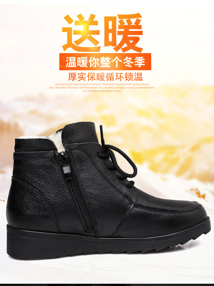 【女款冬季防滑棉鞋】冬季厚实羊毛内里头层牛皮持久保暖拒绝寒冷防滑厚底女款冬季防滑棉鞋