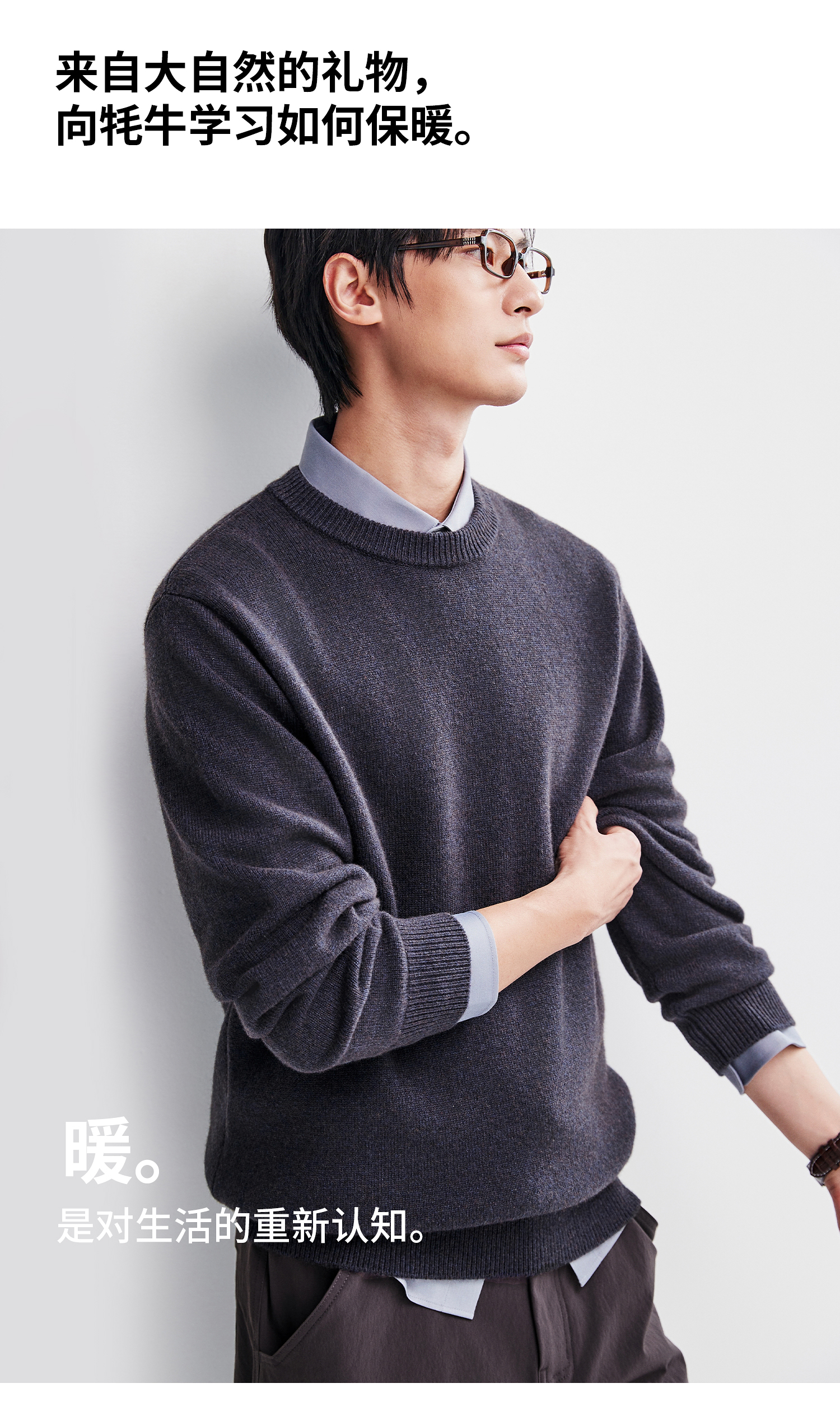 棉仓367826005-微宽松基础款牦牛绒圆领毛衣