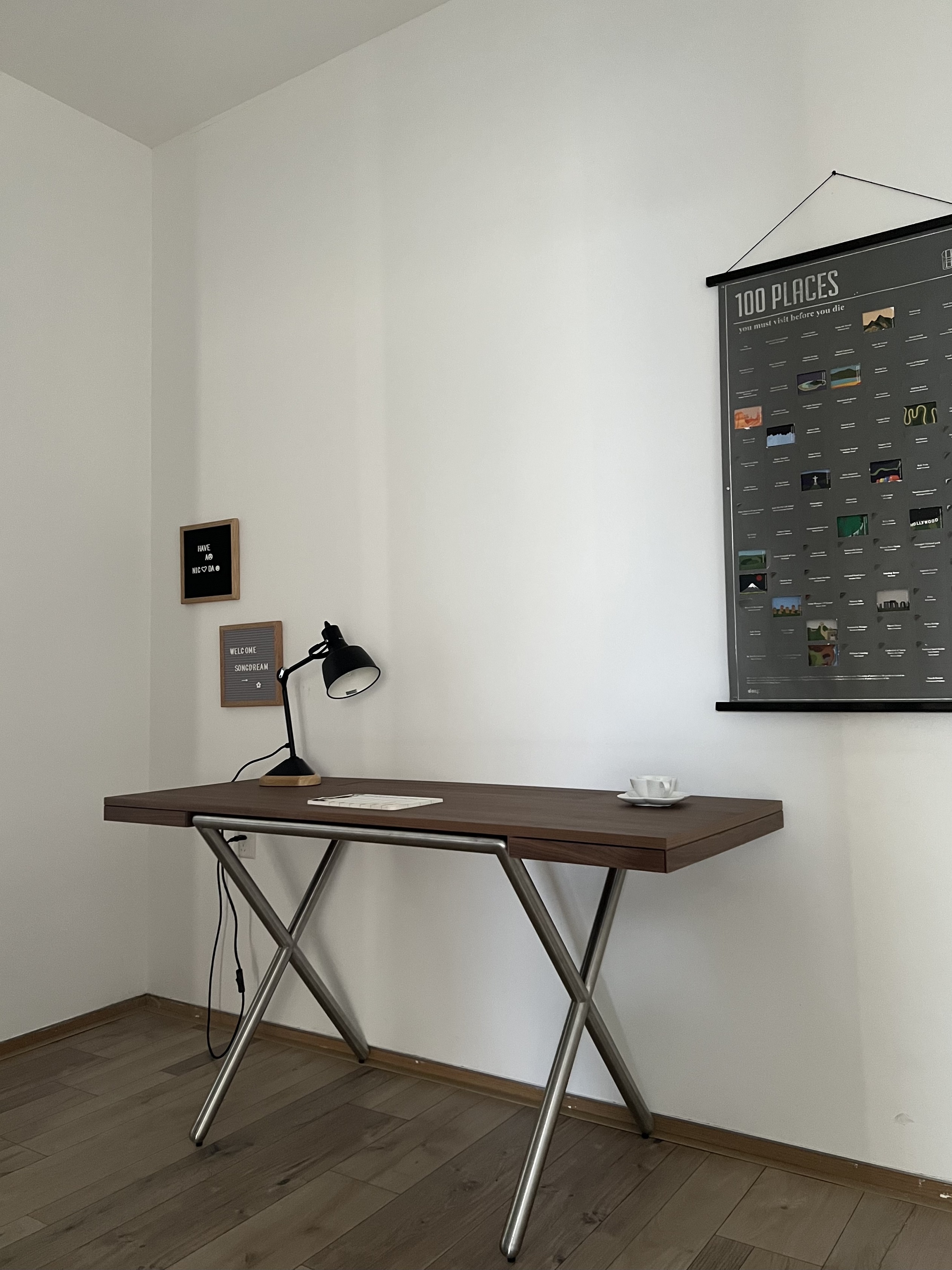 主材:胡原/橡黑+金属支架不锈钢拉丝