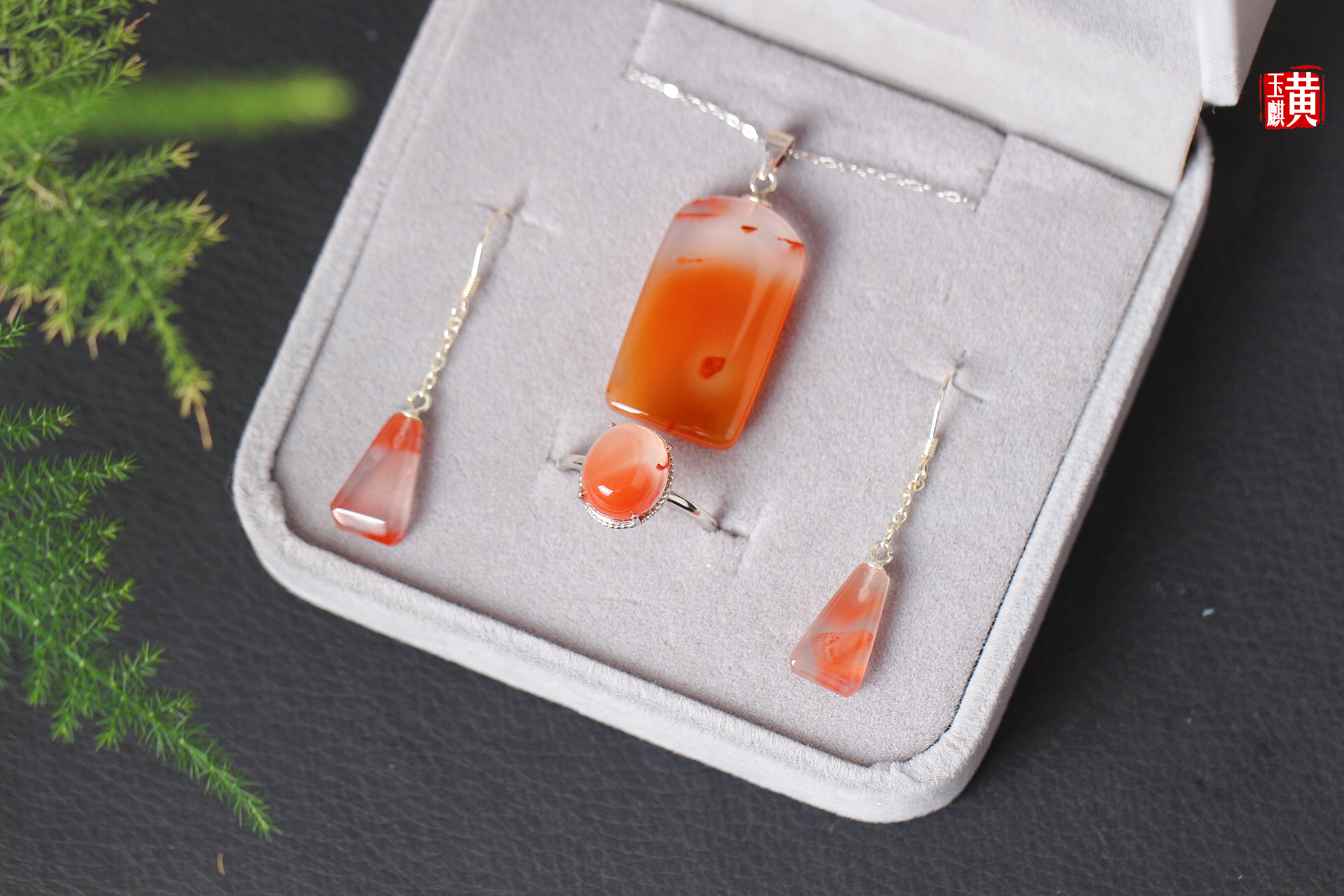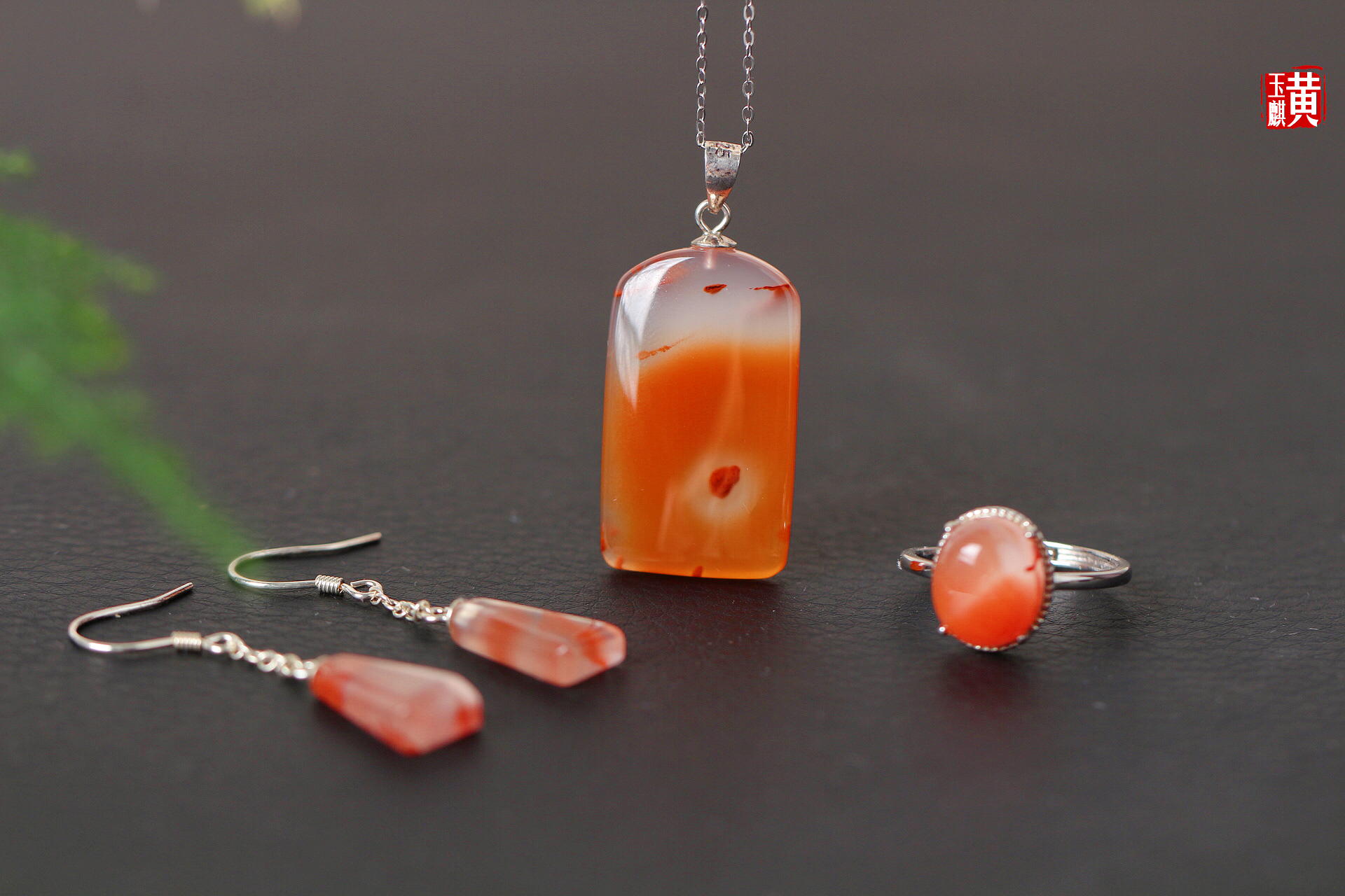 南红冰飘吊坠、戒指、耳钉套装,冰红分明,晶莹剔透,飘红鲜艳亮丽,灵动漂亮,925银镶嵌,精美好看,佩戴高贵优雅,靓丽吸睛。