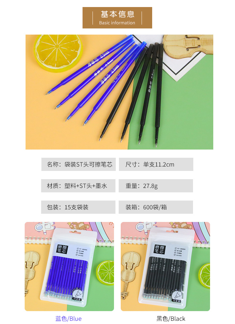袋装ST头速干摩易消笔芯创意文具摩易擦按动笔替换芯热敏可擦笔芯 蓝色28g