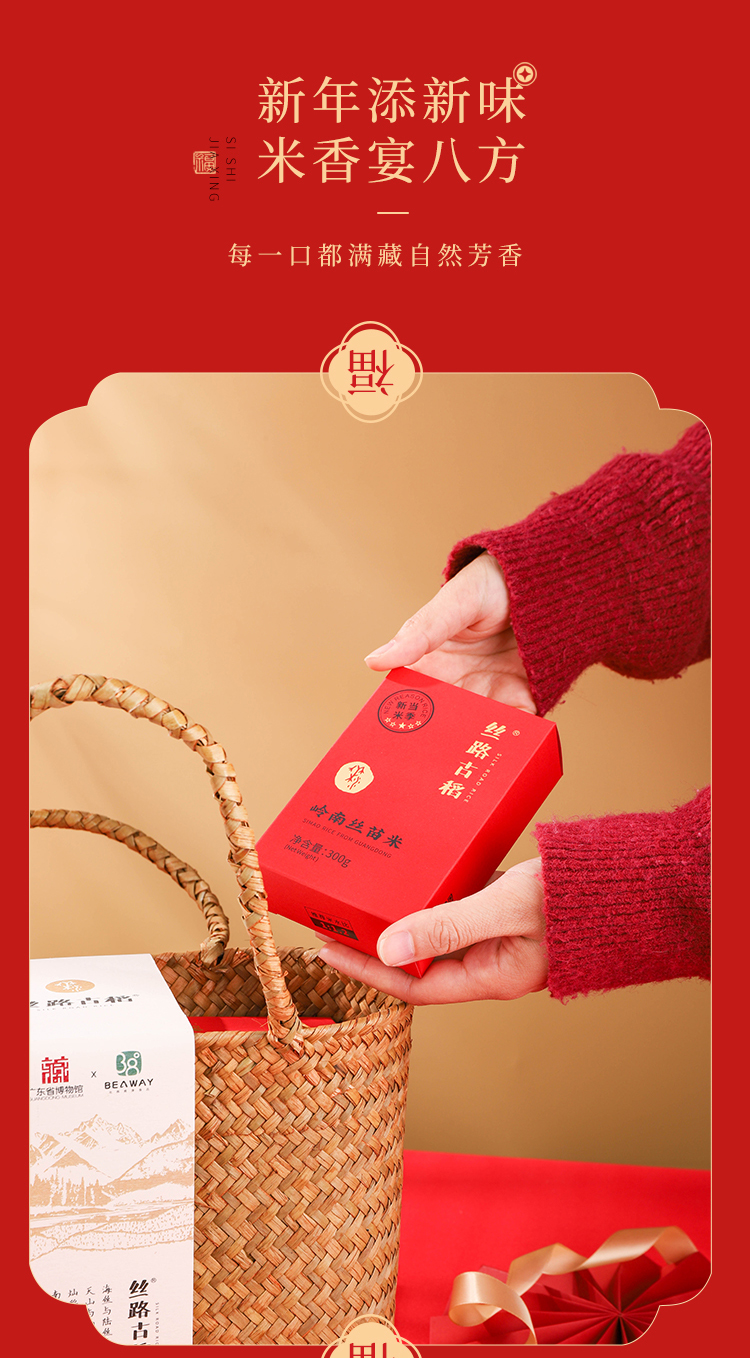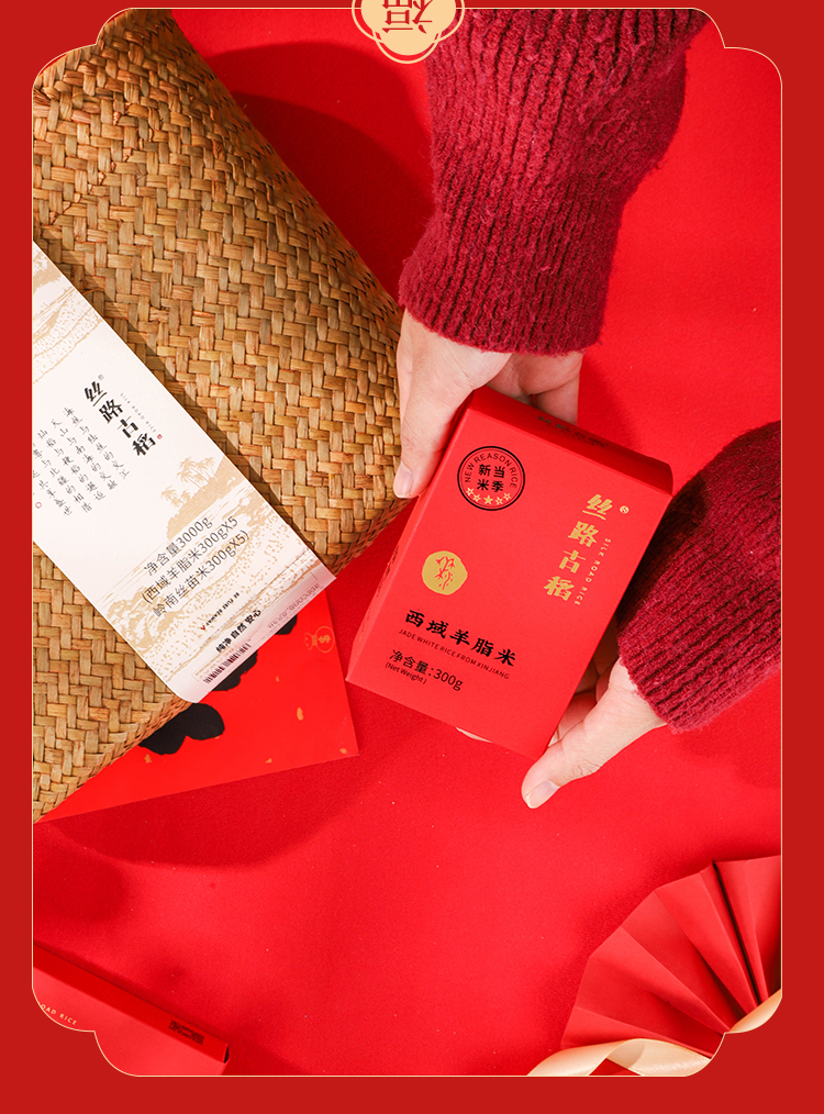 北纬纯净食品|【省博联名】新疆羊脂米丝苗米草编袋组合煮饭大米