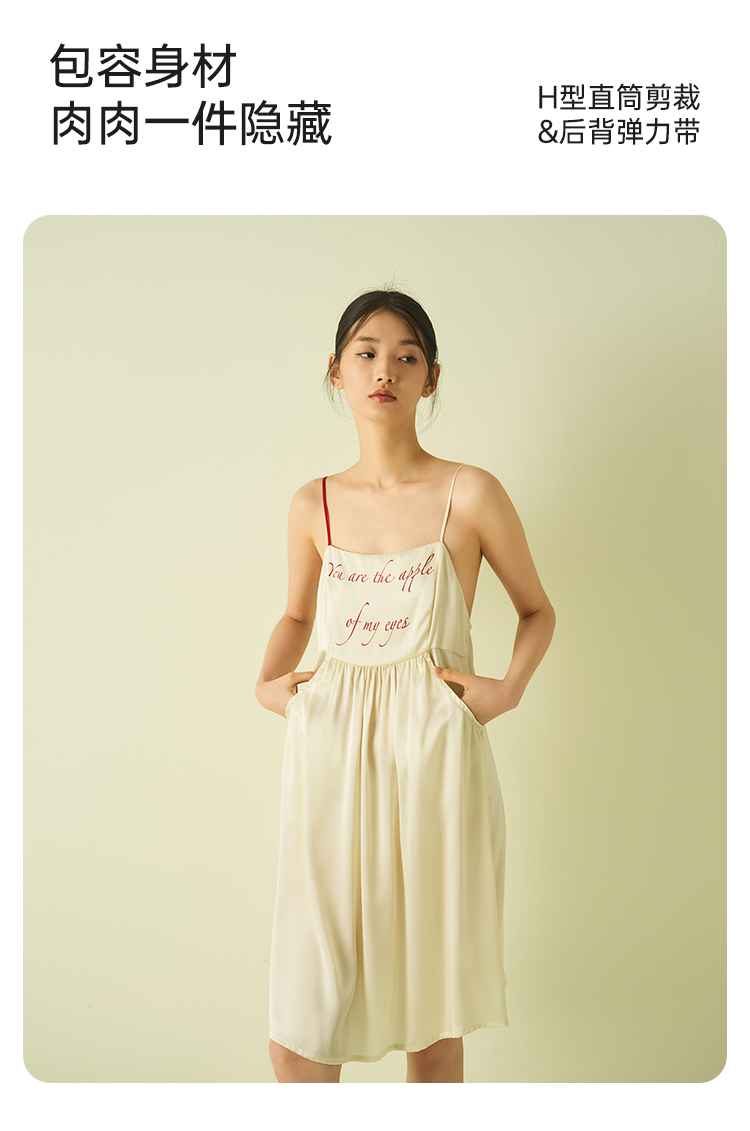 情人节送礼』桑罗桑蚕丝520字母刺绣吊带裙女2025新款送礼