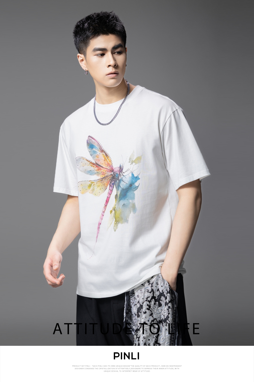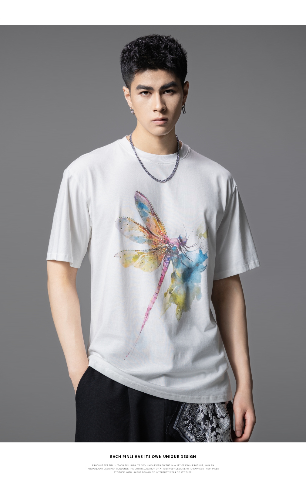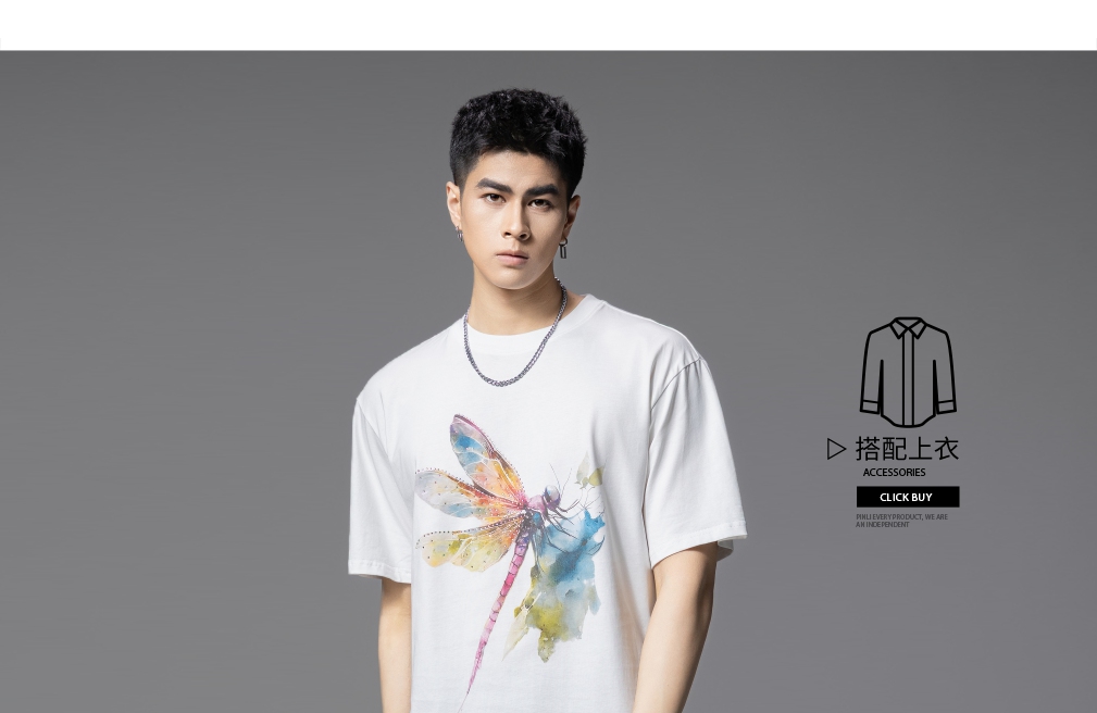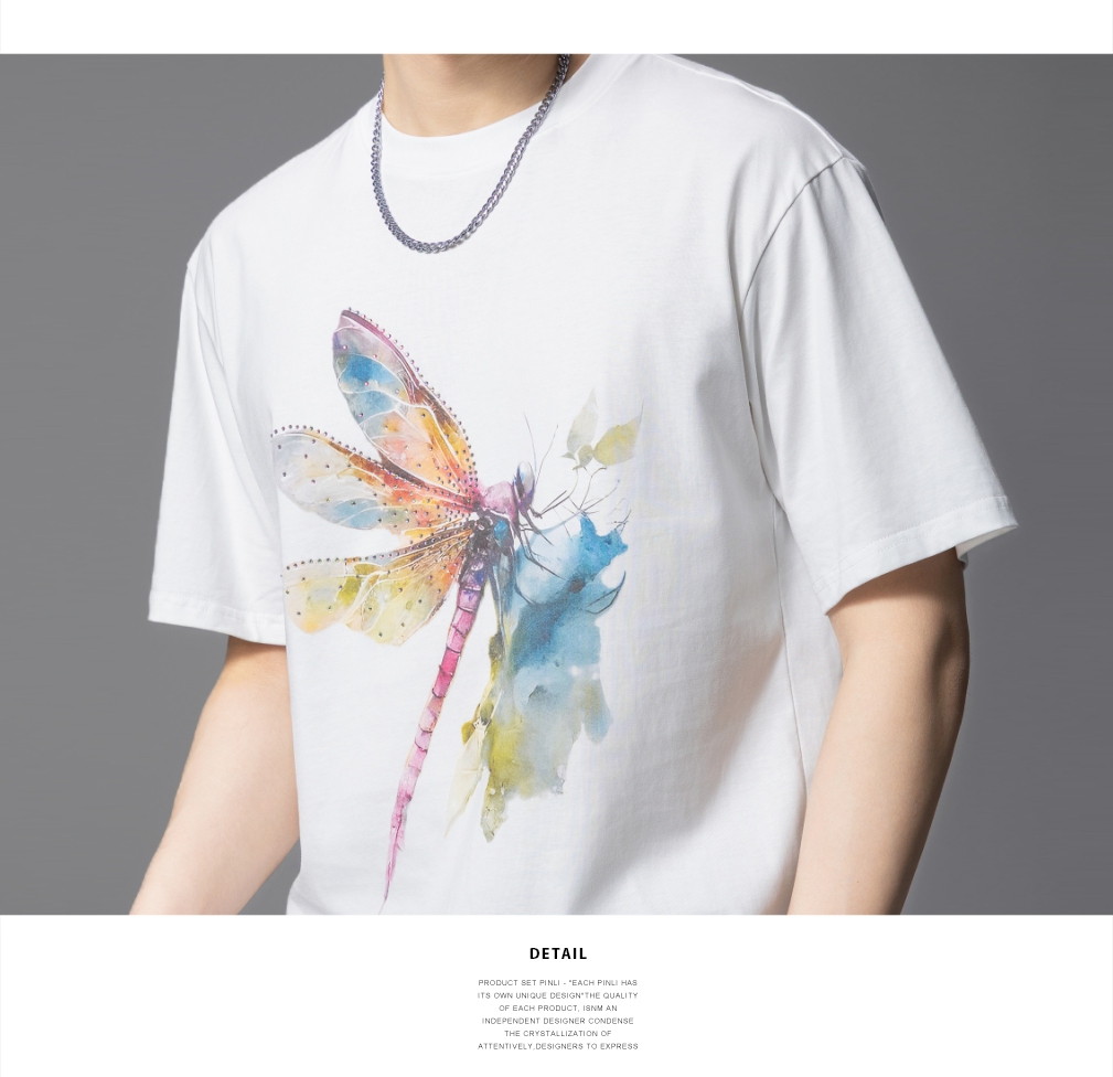 PINLI品立2025夏季新款圆领动物印花烫钻短袖T恤男士体恤衫上衣潮BG252111031