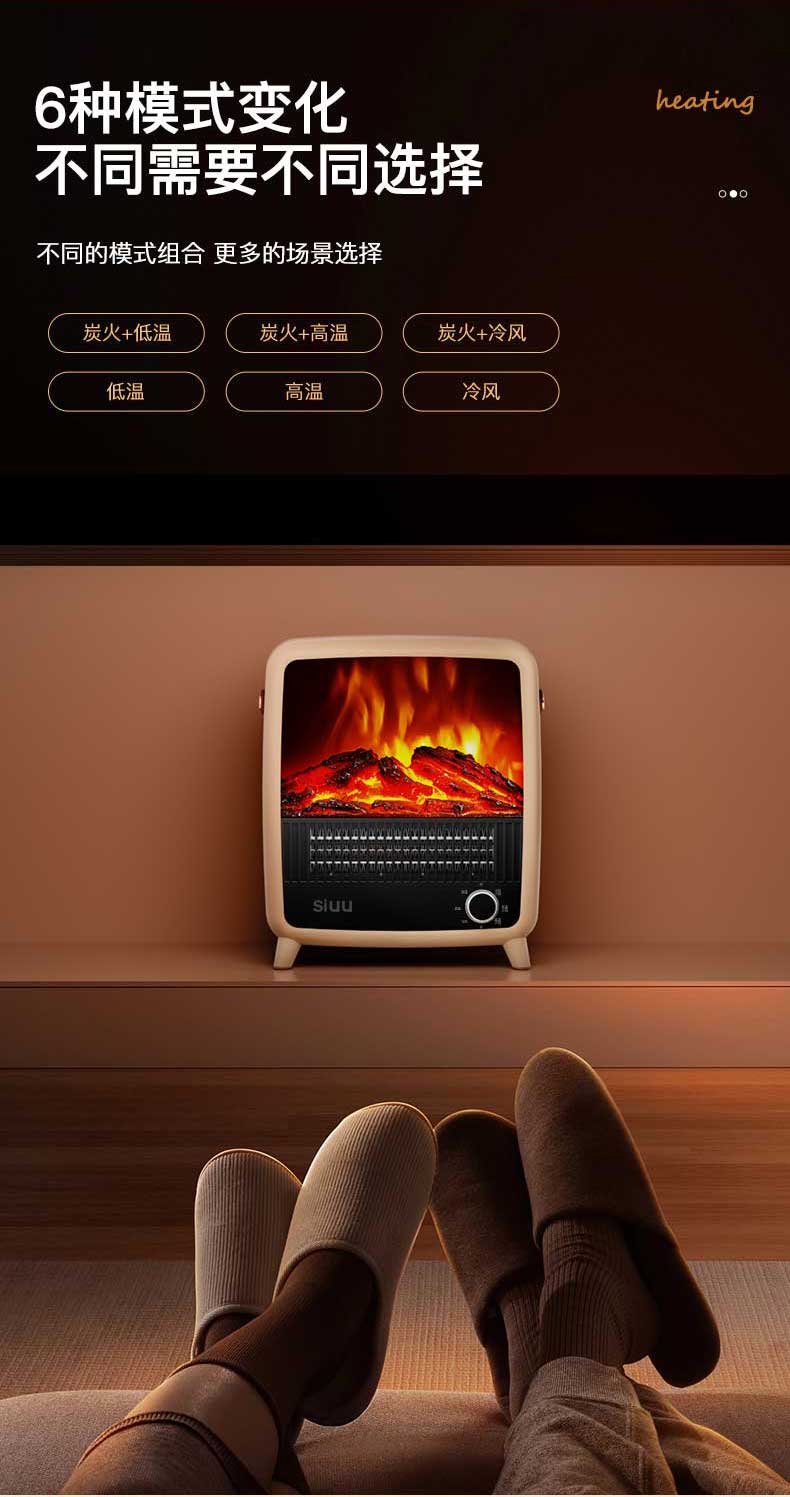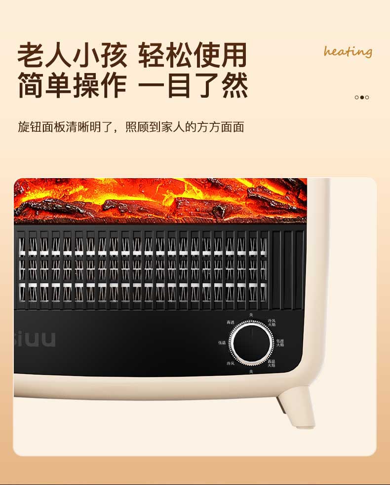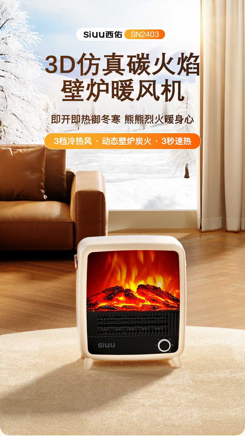 西佑SIUU【5D火焰】壁炉取暖器台地两用烤火炉 大面积轻音节能电热风扇炭火暖风机SN2403
