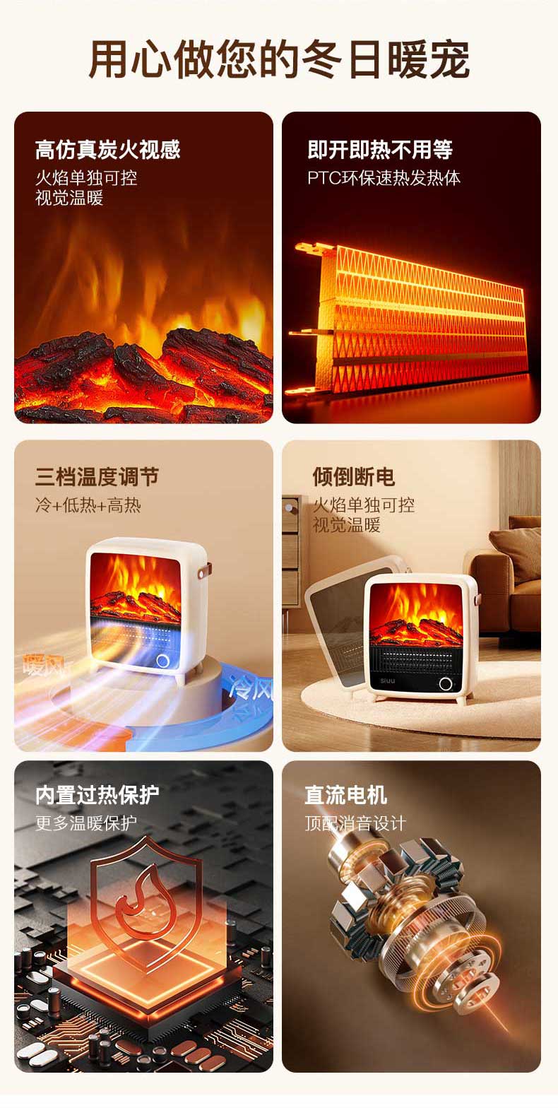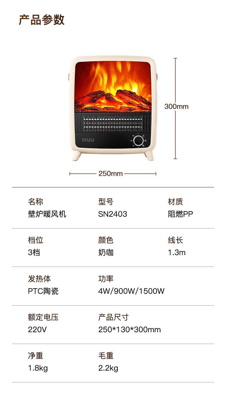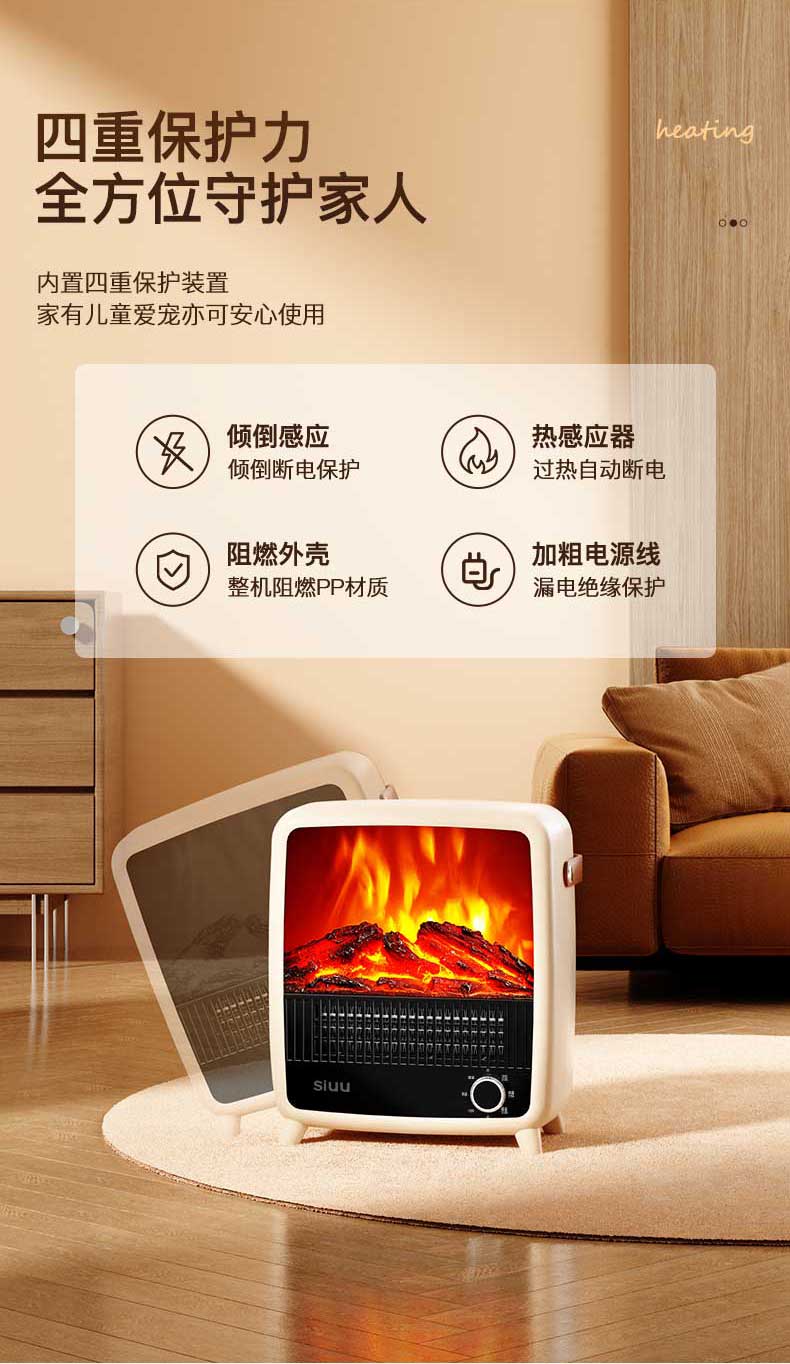西佑SIUU【5D火焰】壁炉取暖器台地两用烤火炉 大面积轻音节能电热风扇炭火暖风机SN2403