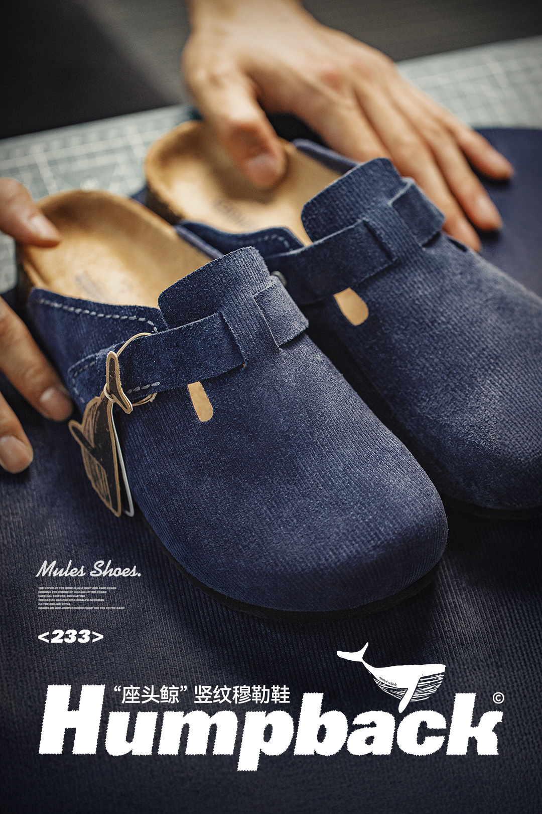 马登2025夏季新款座头鲸蓝色穆勒鞋男休闲平底全包头外穿半拖鞋子