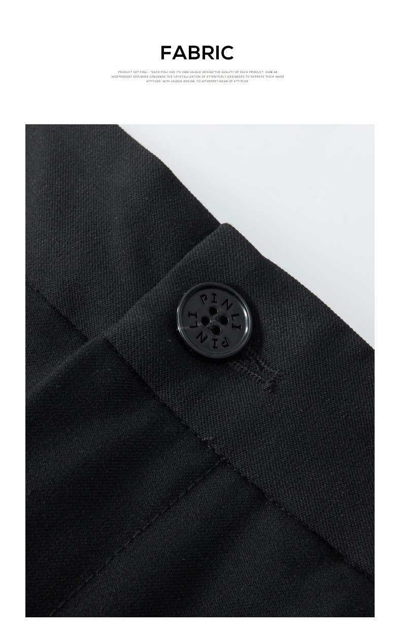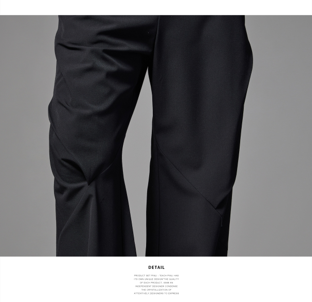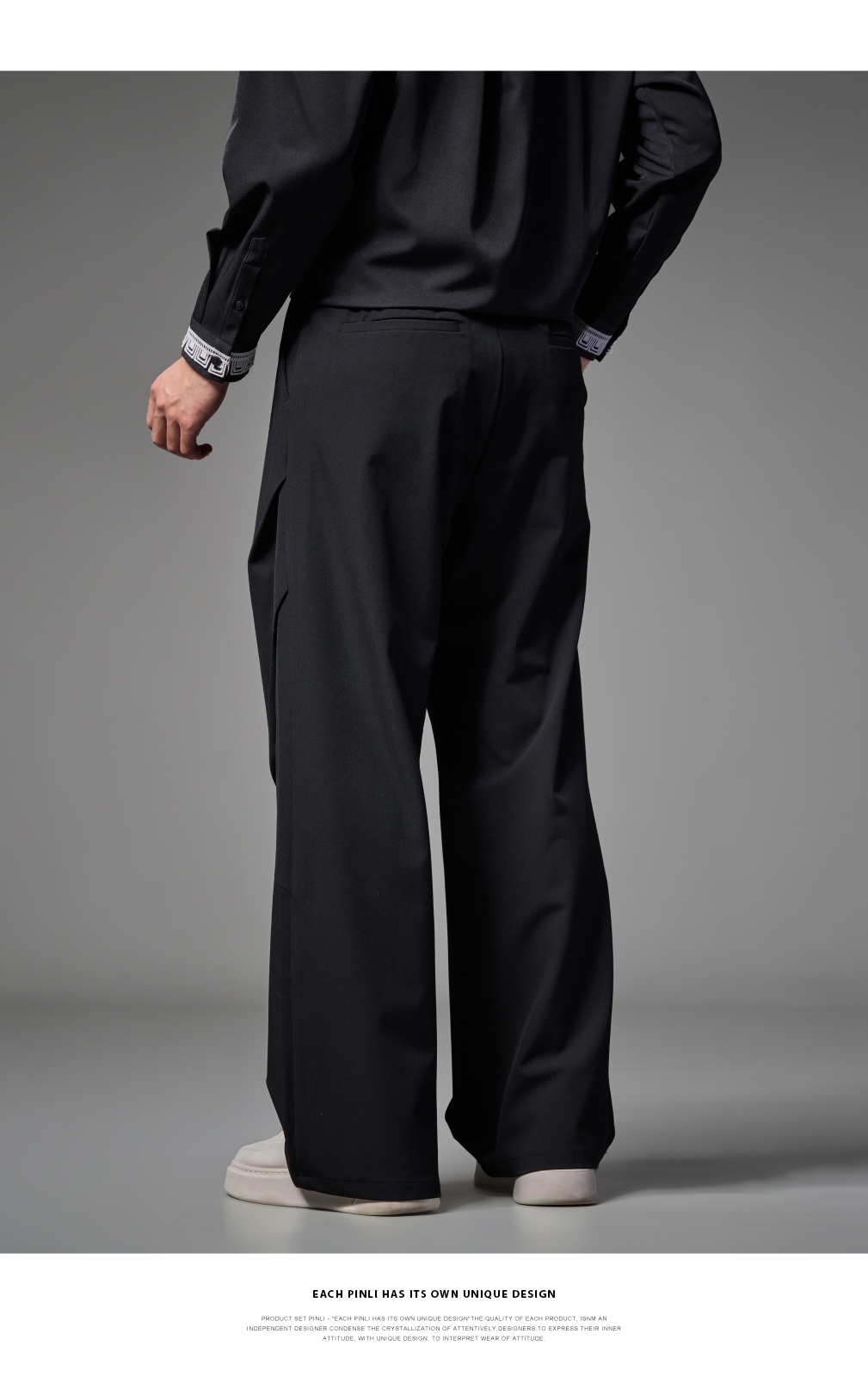 PINLI品立春秋新款男士黑色褶皱直筒裤潮牌百搭时尚休闲长裤B243117102