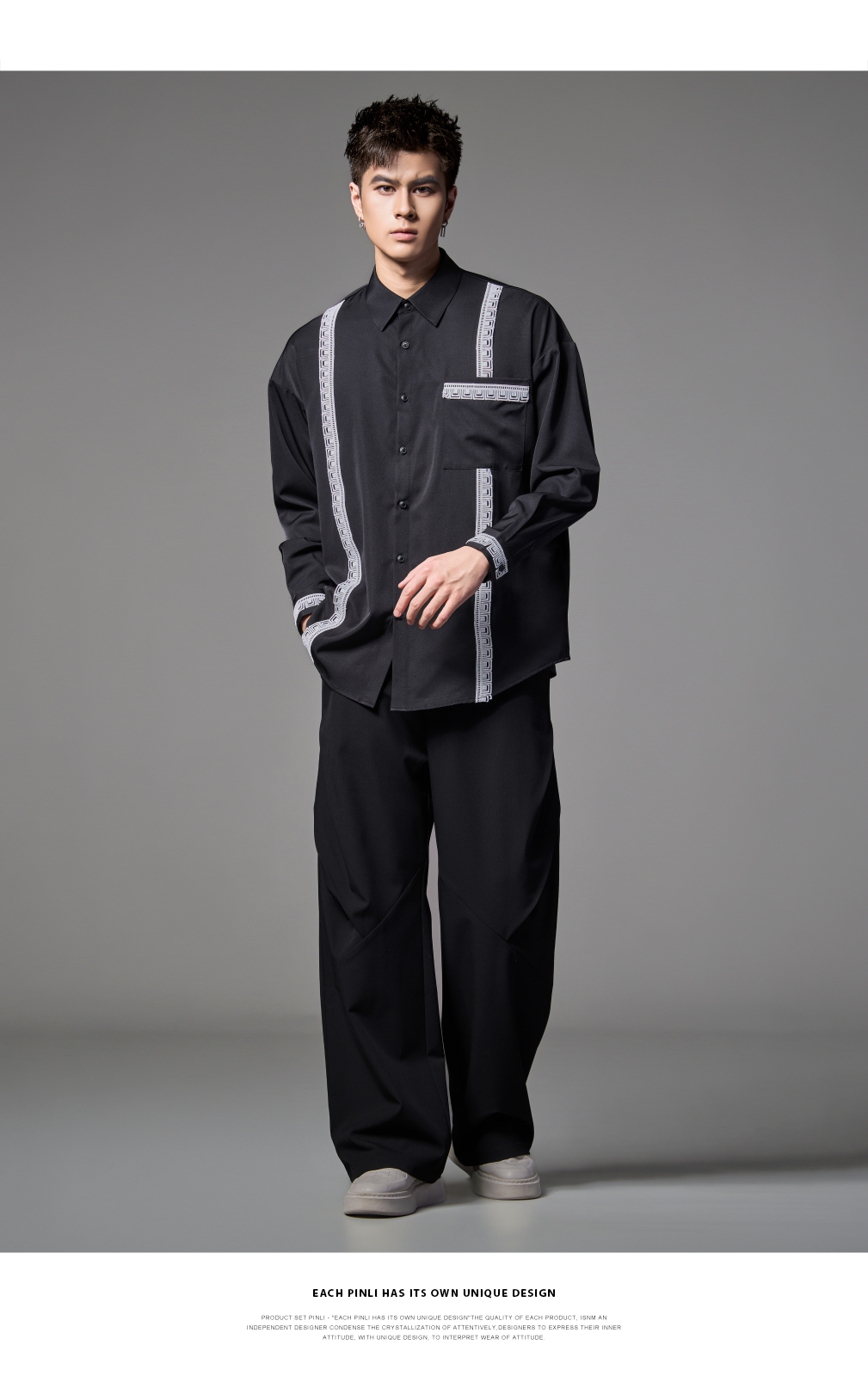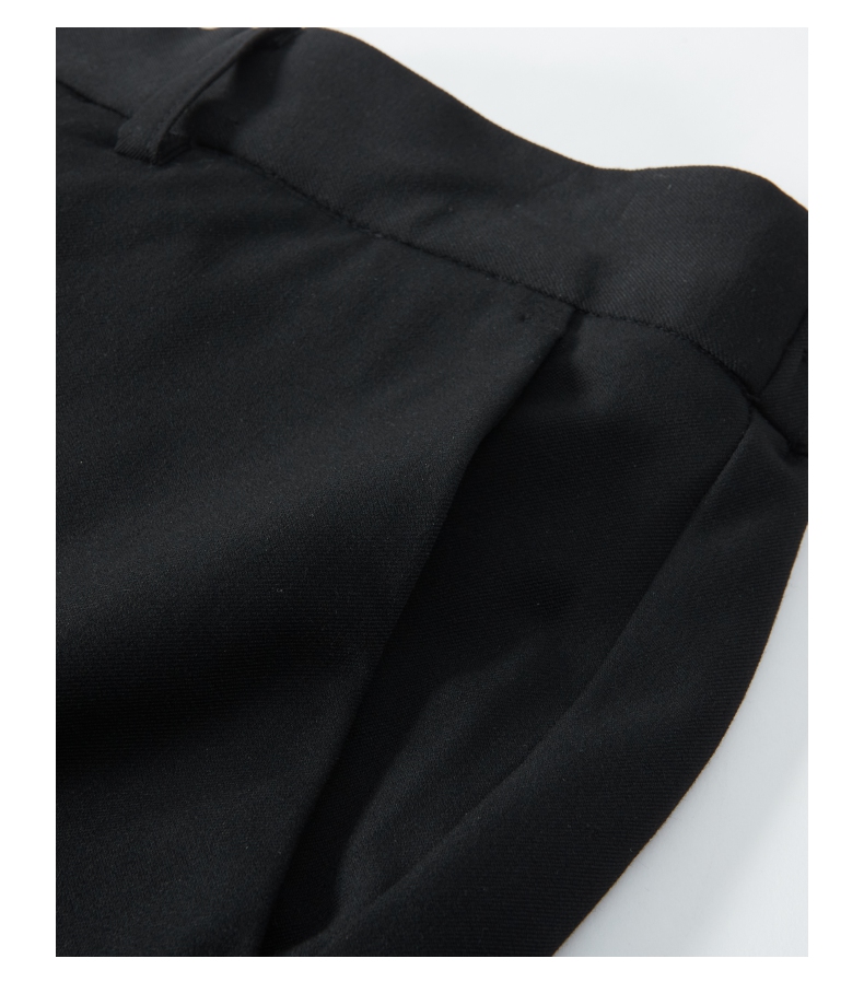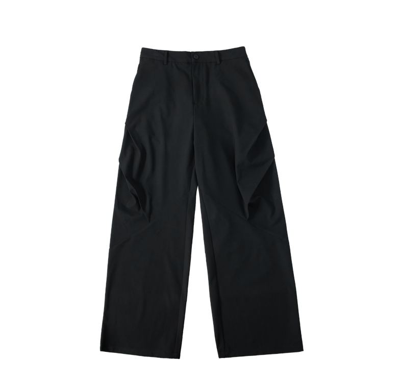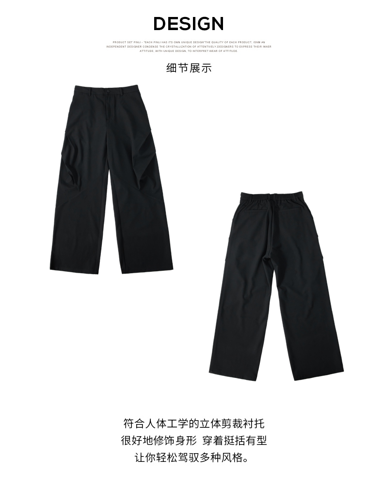 PINLI品立春秋新款男士黑色褶皱直筒裤潮牌百搭时尚休闲长裤B243117102