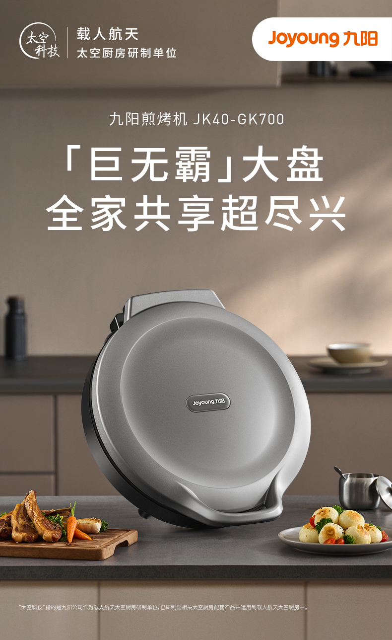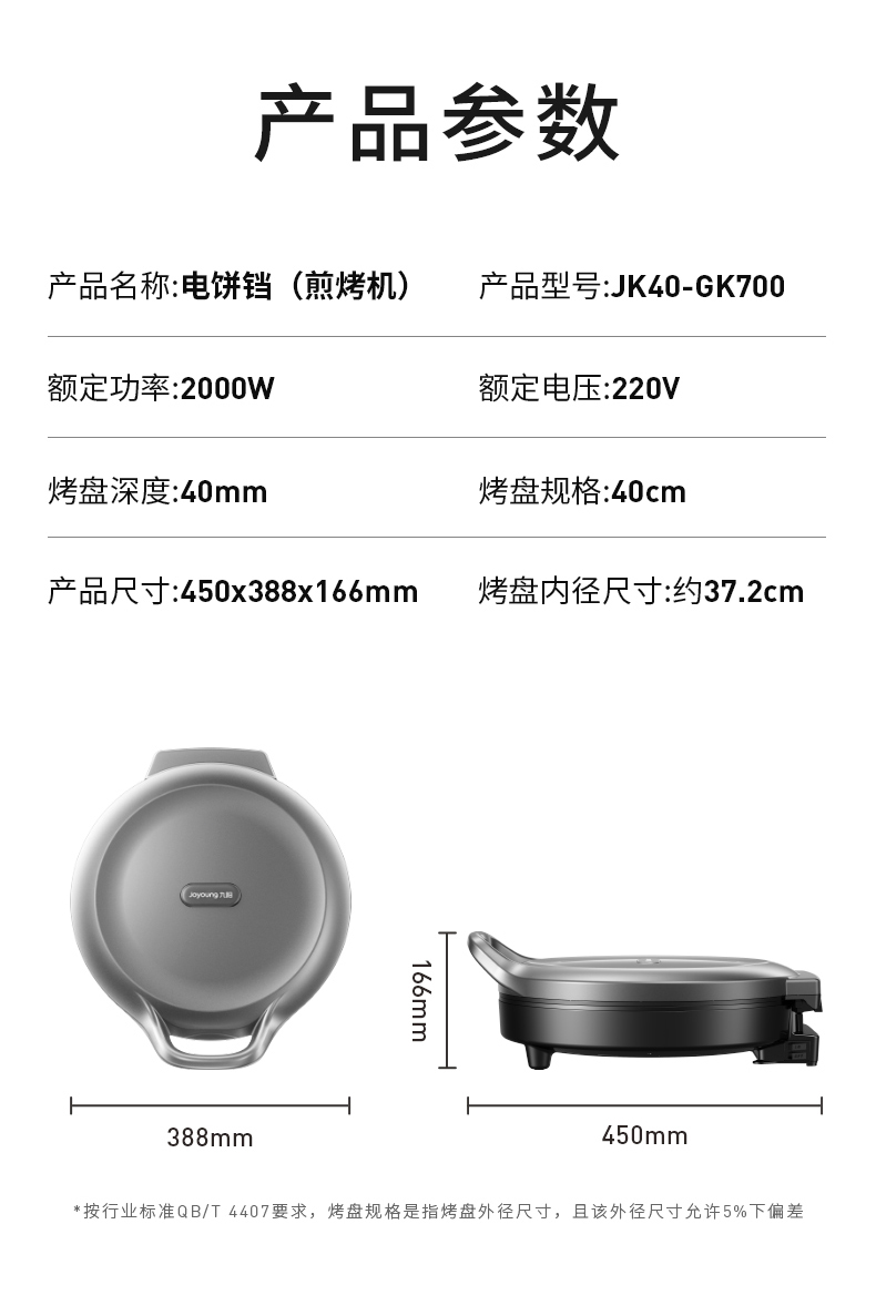 九阳0氟钛瓷电饼铛2000W超大烤盘双面加热家用煎烤机多功能早餐机