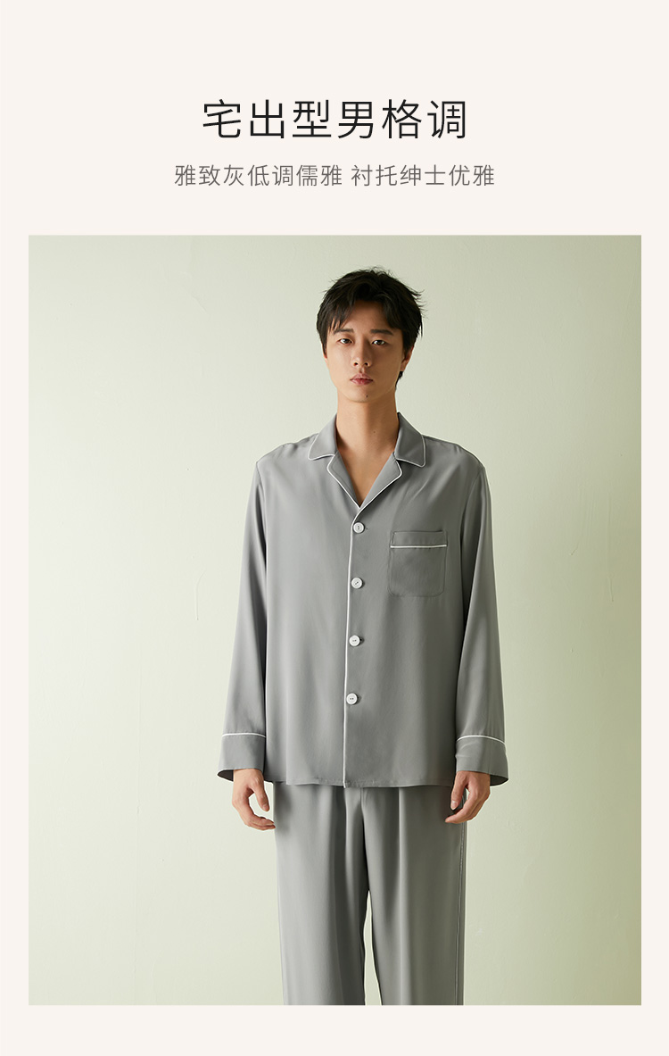 桑罗23姆米重磅真丝睡衣男2024年新款桑蚕丝高档简约轻奢风家居服