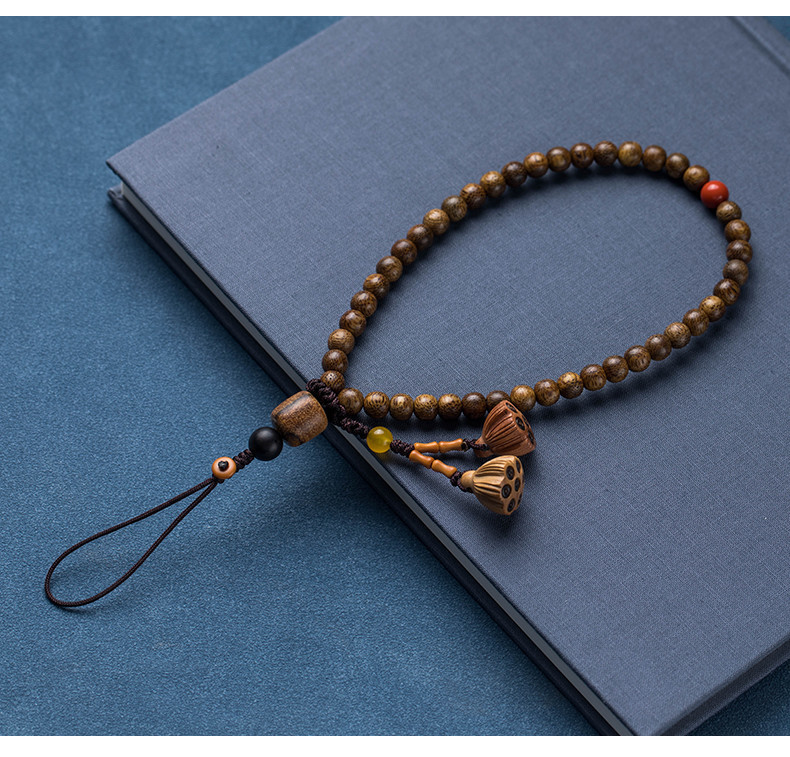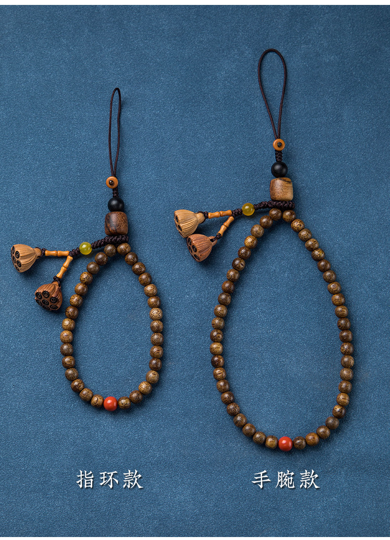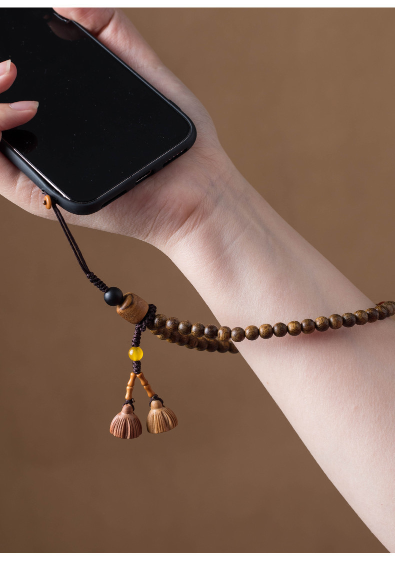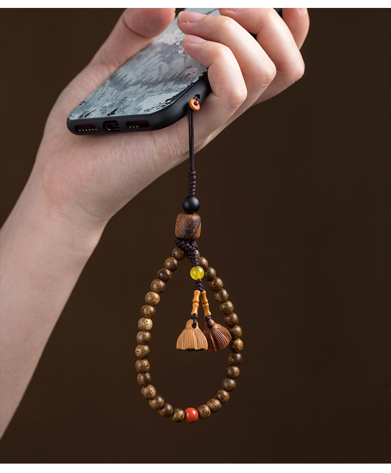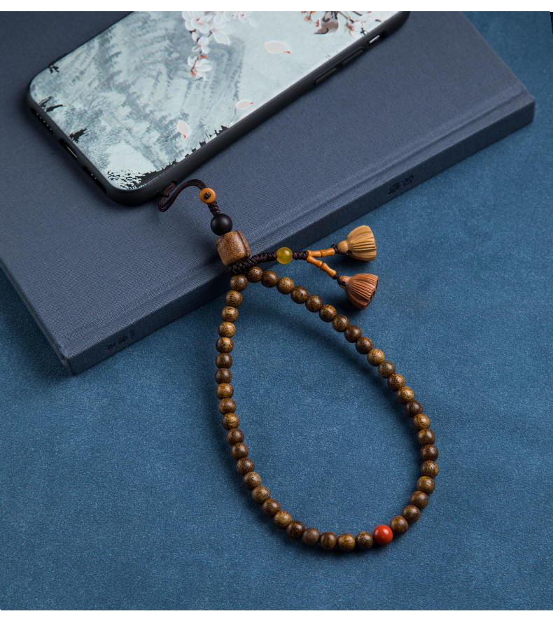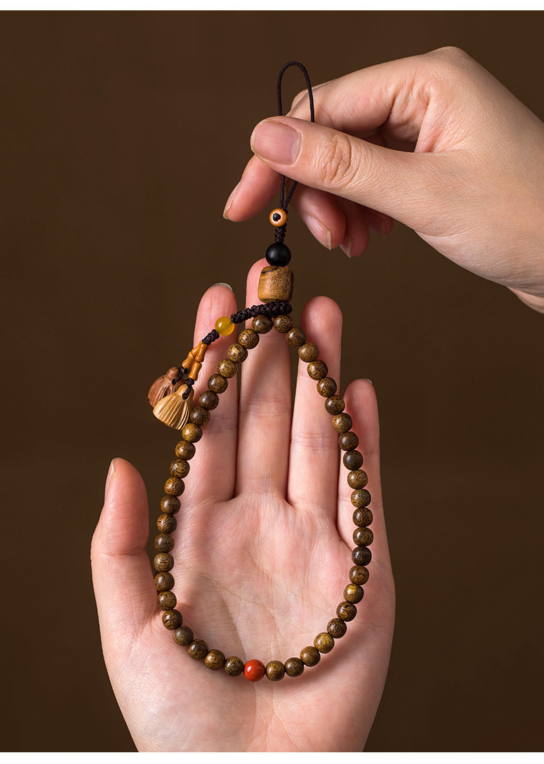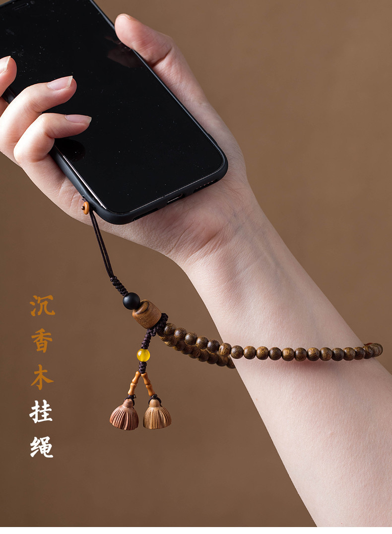 天然沉香木加里曼丹手机挂绳短款手腕绳男女手机链佛珠吊坠挂饰