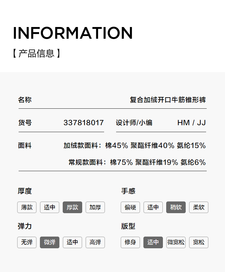 棉仓337818017-复合加绒开口牛筋锥形裤