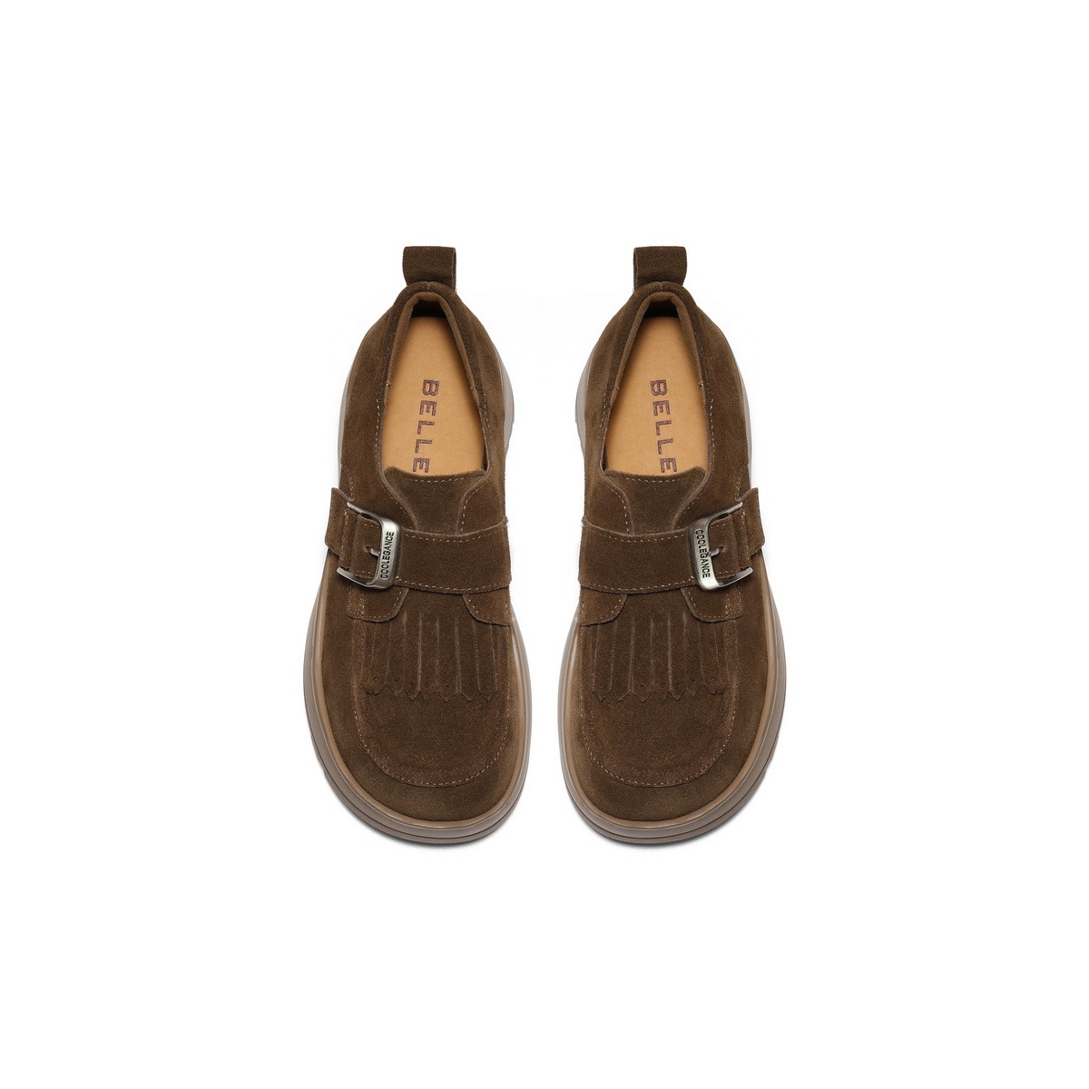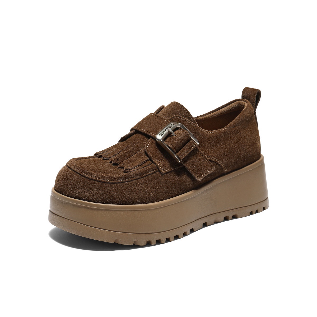 BF楼百丽加绒26年厚底复古绒面乐福勃肯鞋新款英伦风单鞋子E8N1DAM6
