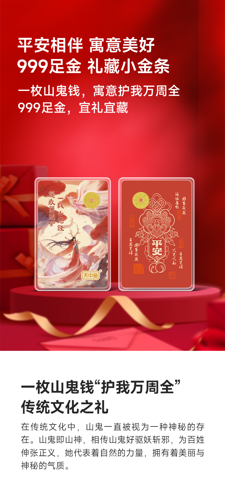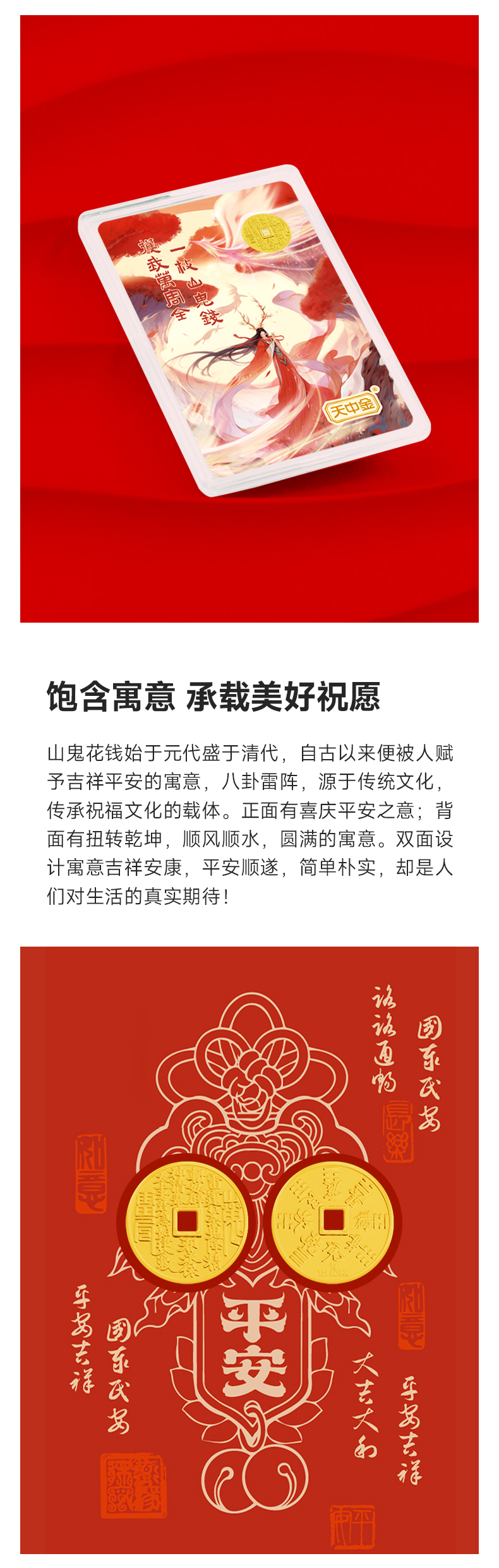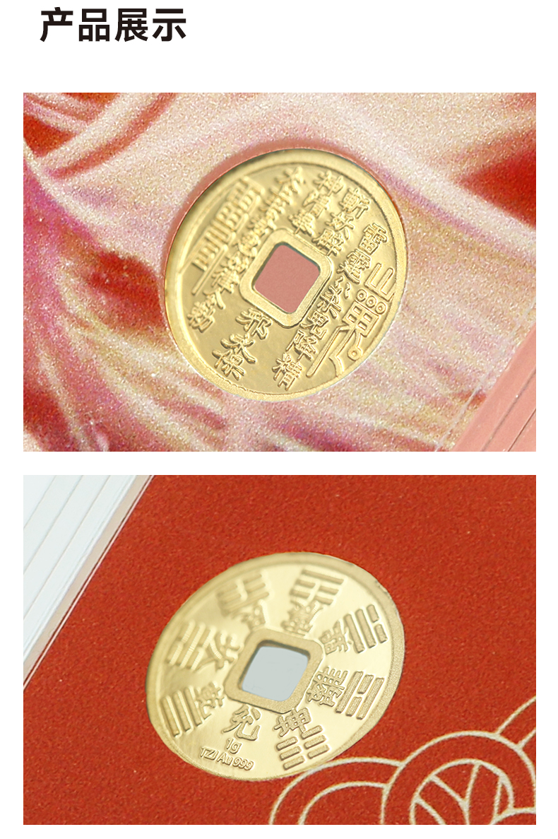 【黄金】山鬼钱护身小金条·1克八卦花钱平安金(Au999)