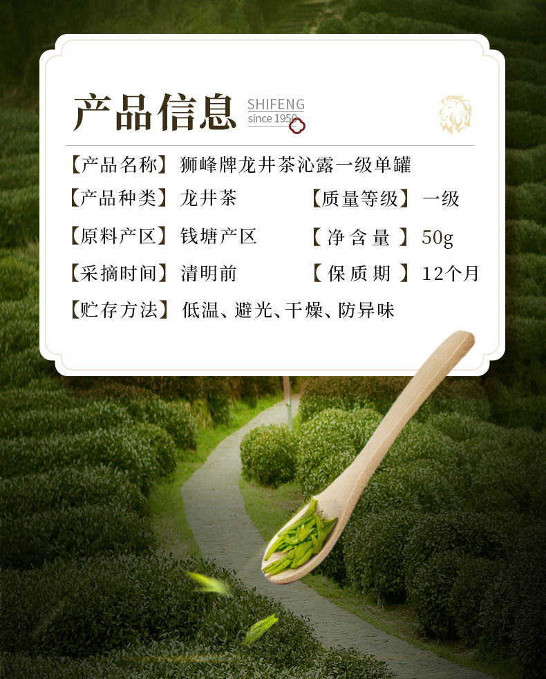 2026年新茶预定狮峰牌龙井茶沁露骑火醇一级50g罐装