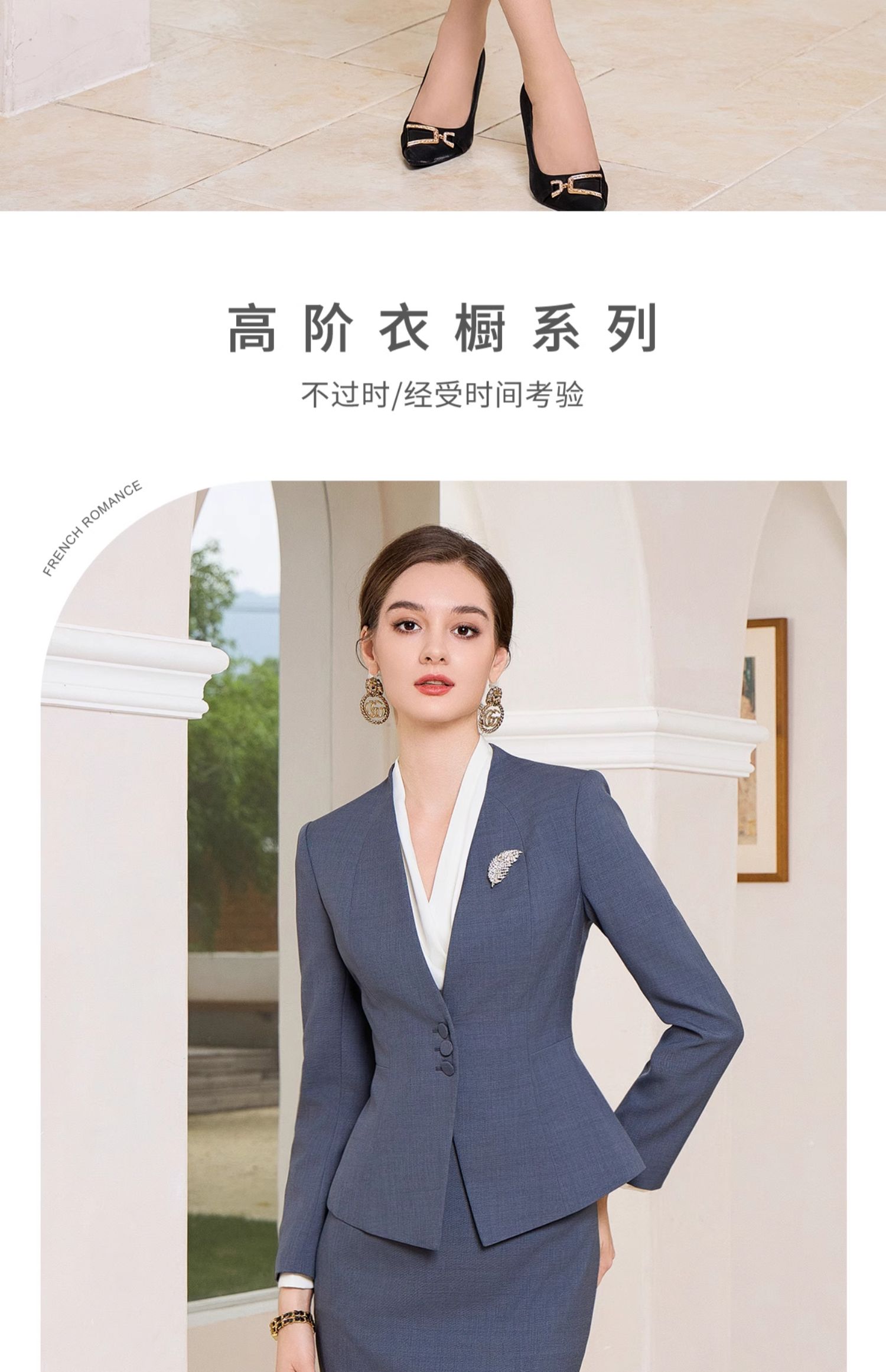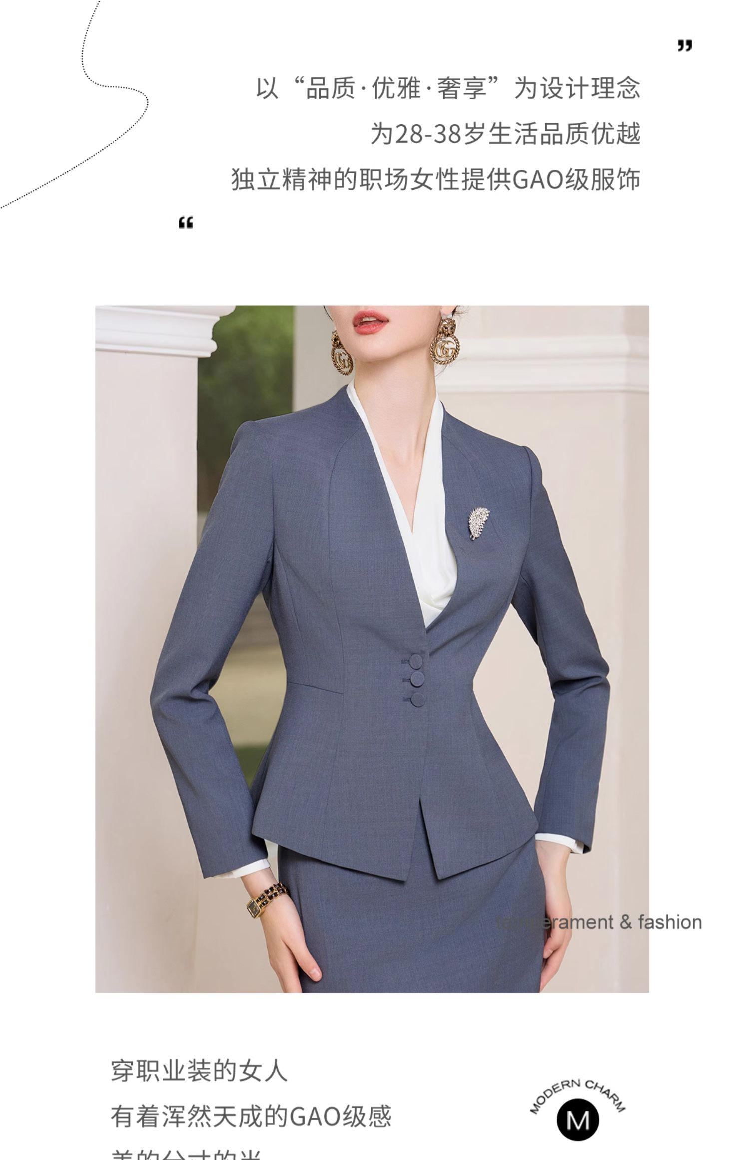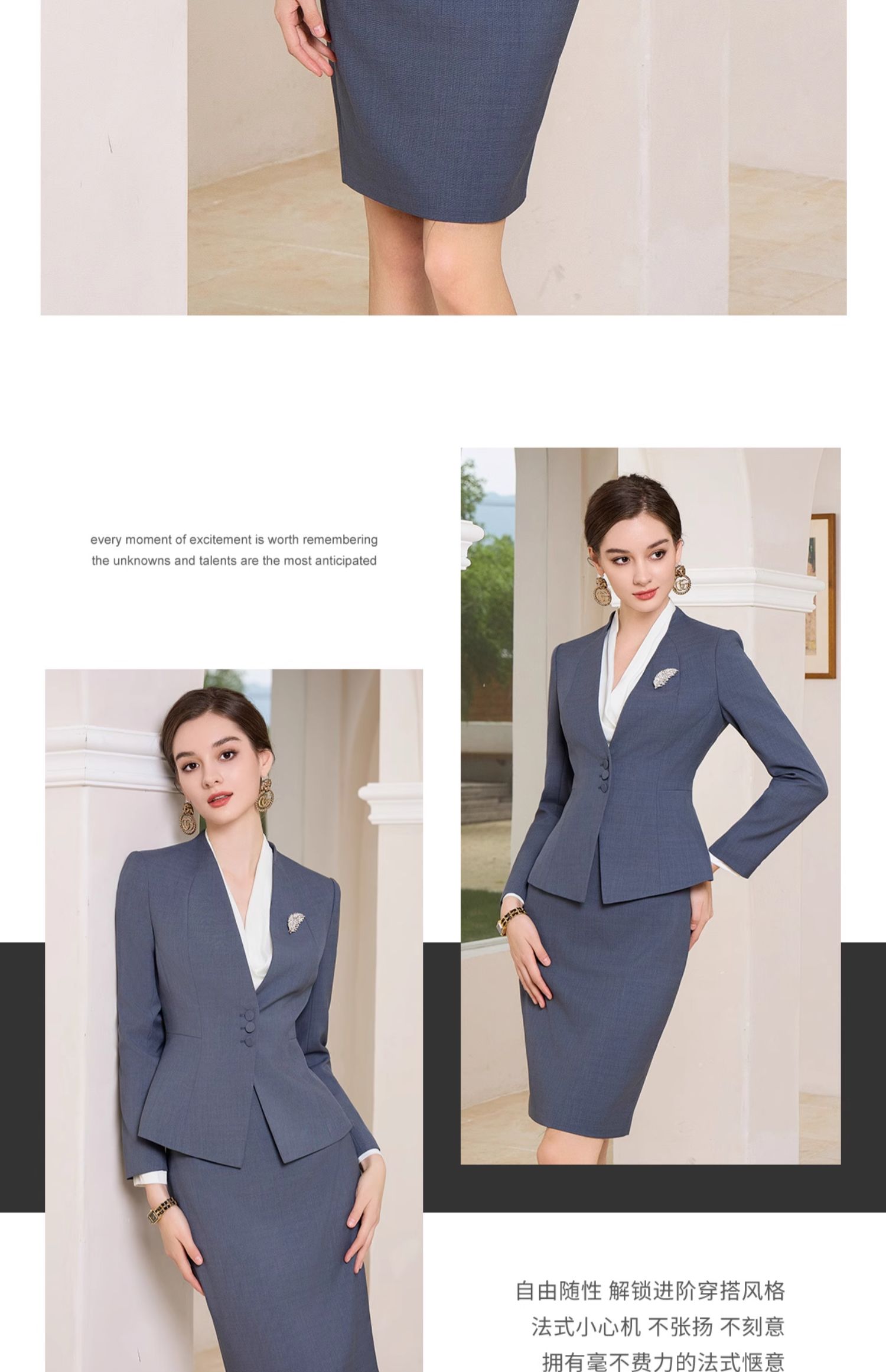 AD行政套装女秋季2023新款女装高级感蓝灰色一粒扣职业西装工作服