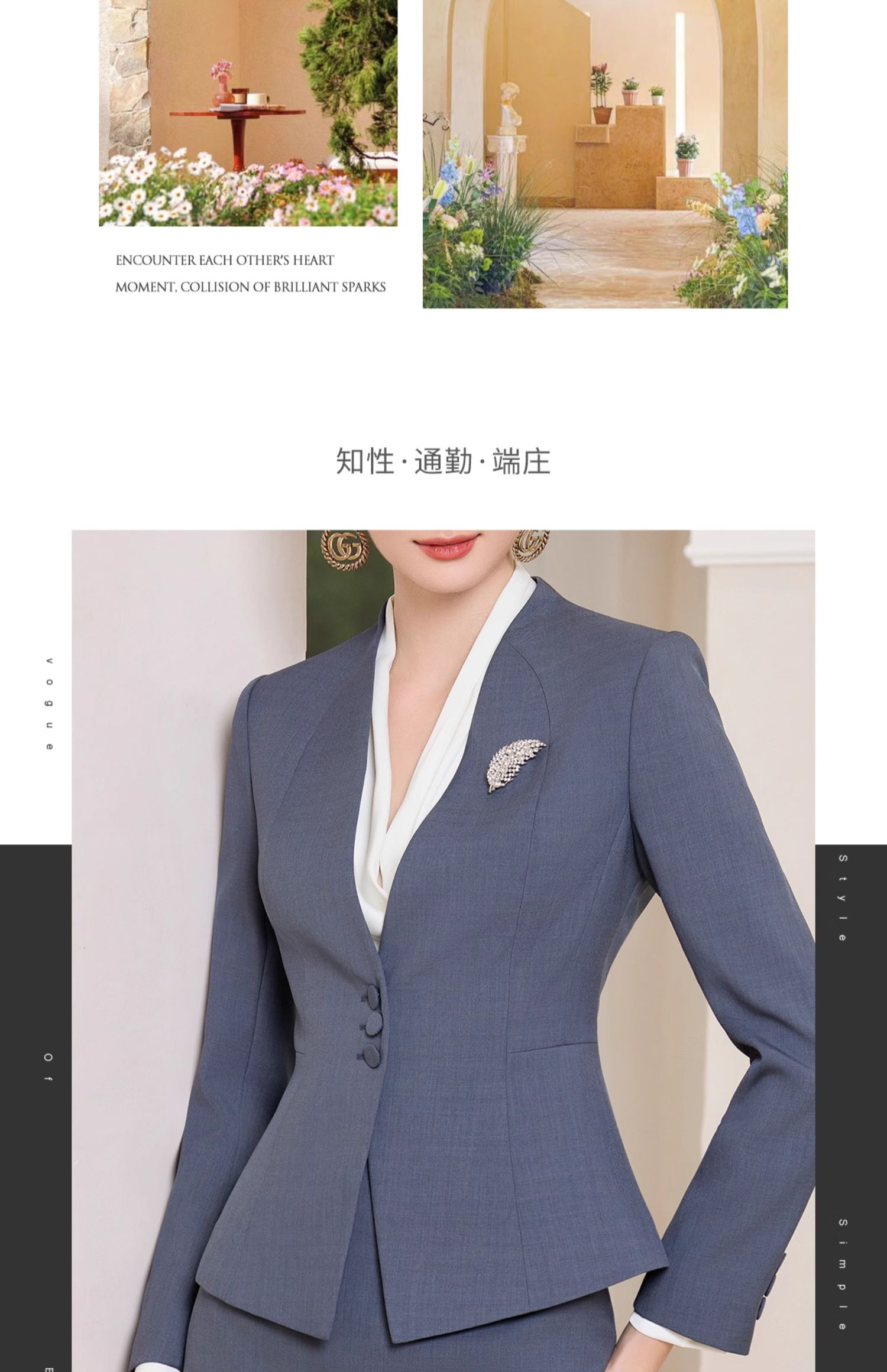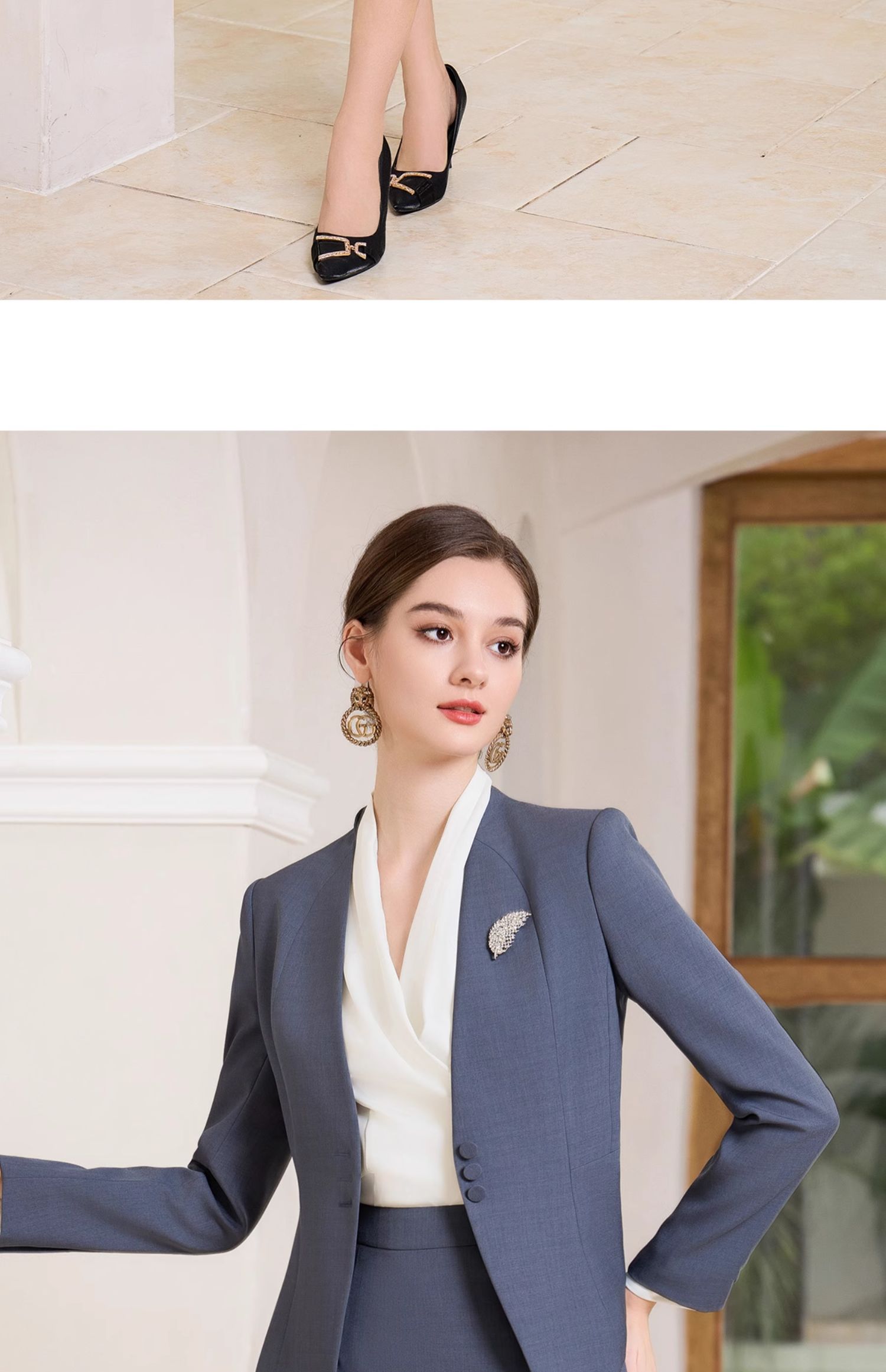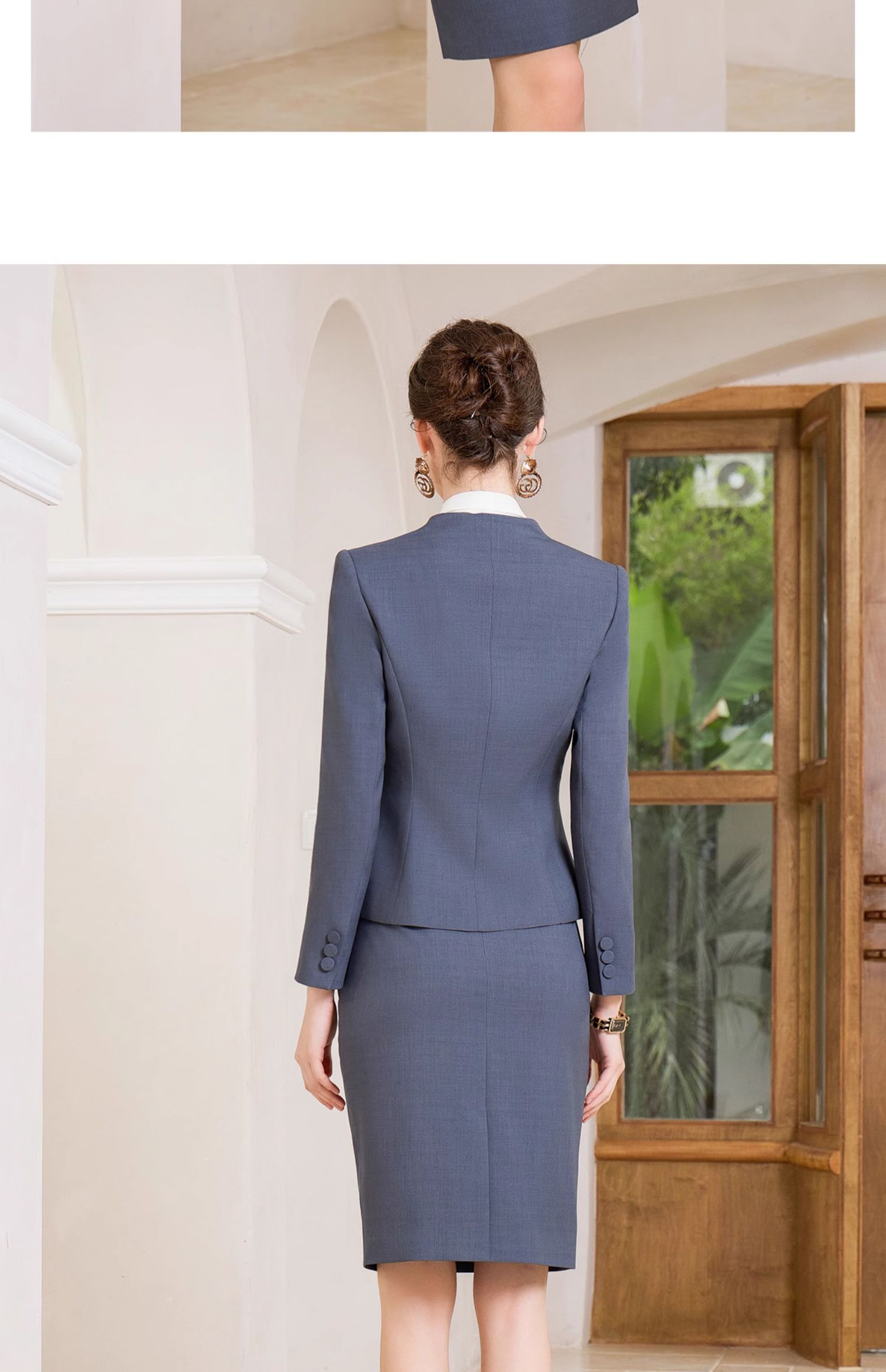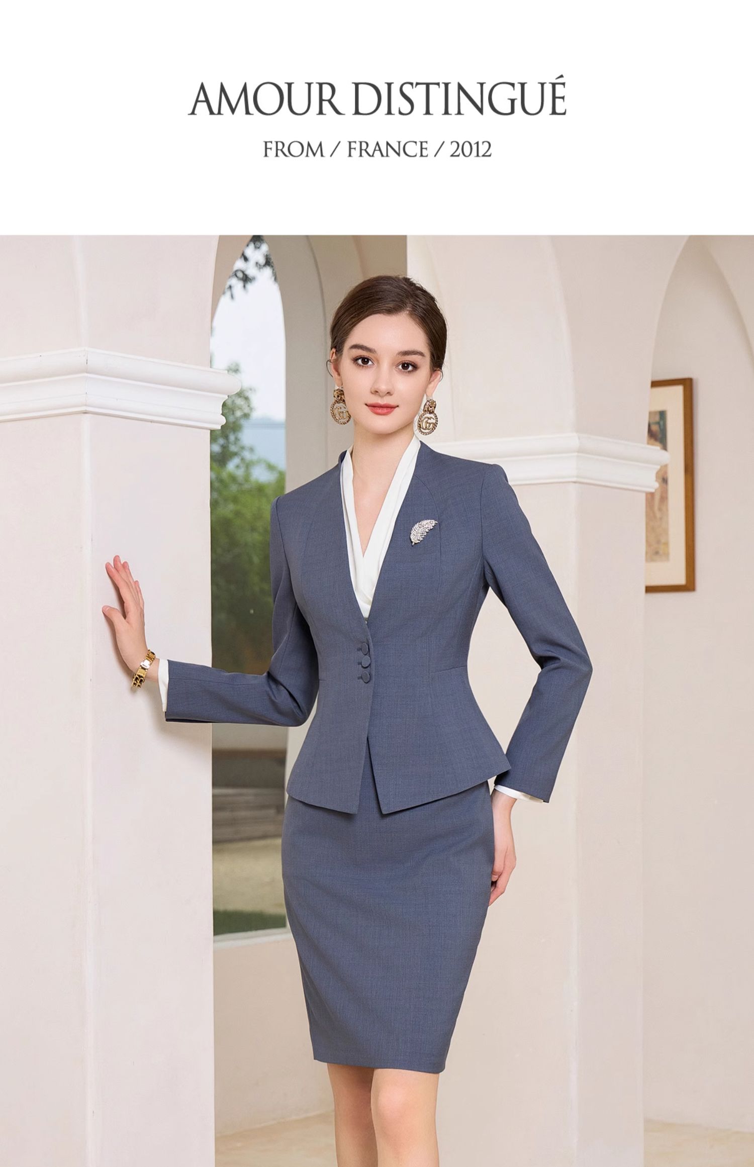 AD行政套装女秋季2023新款女装高级感蓝灰色一粒扣职业西装工作服