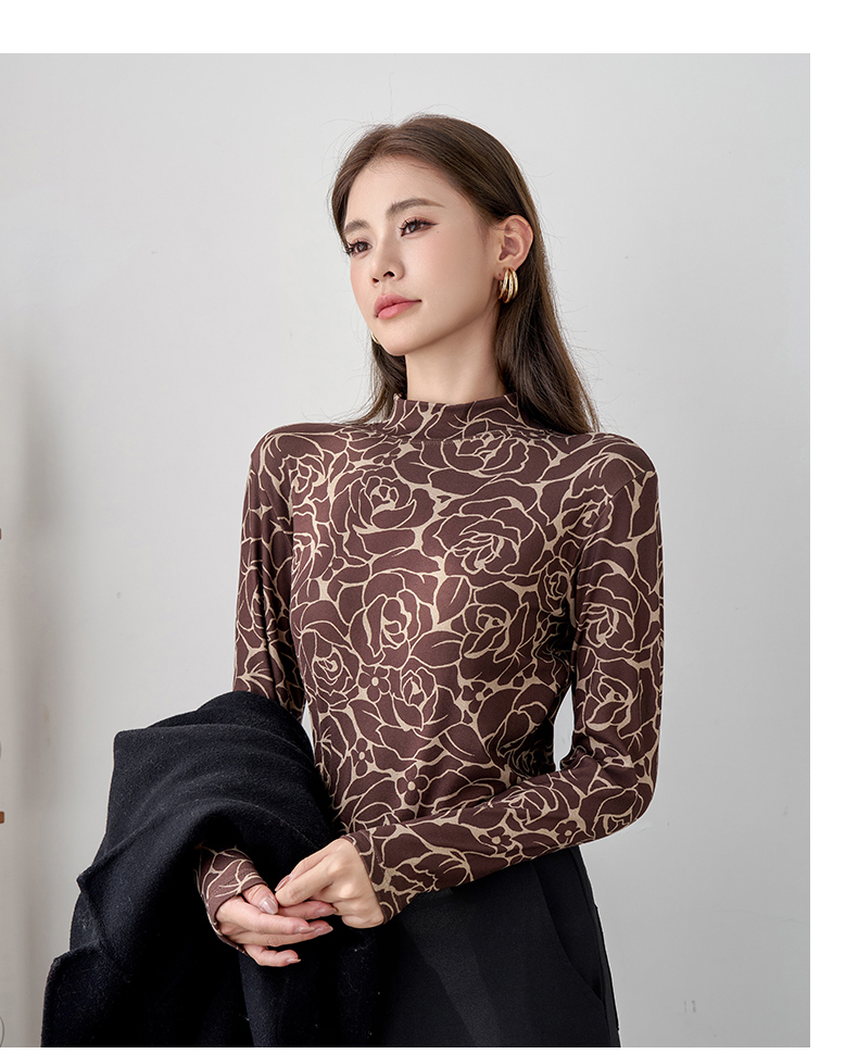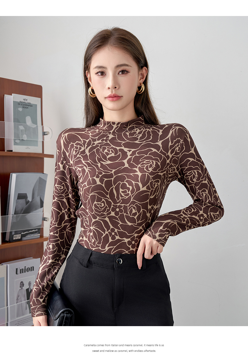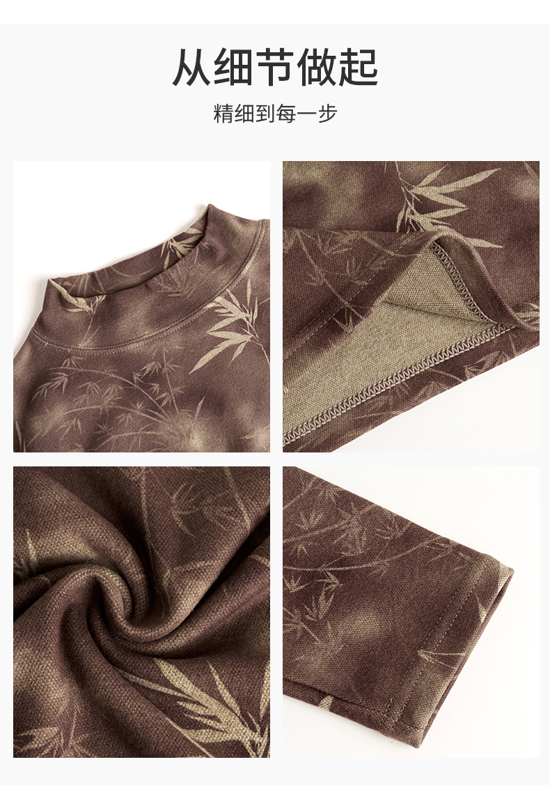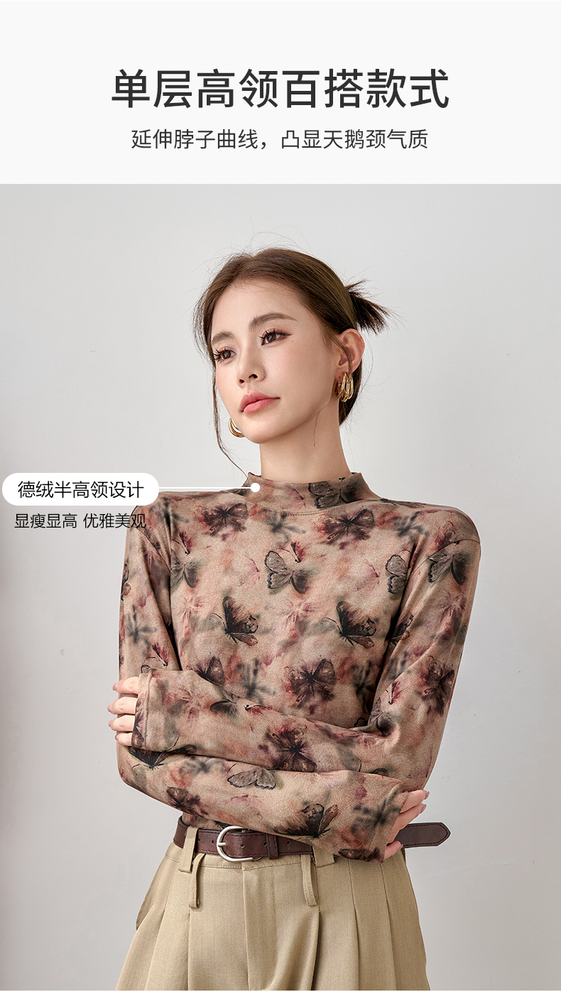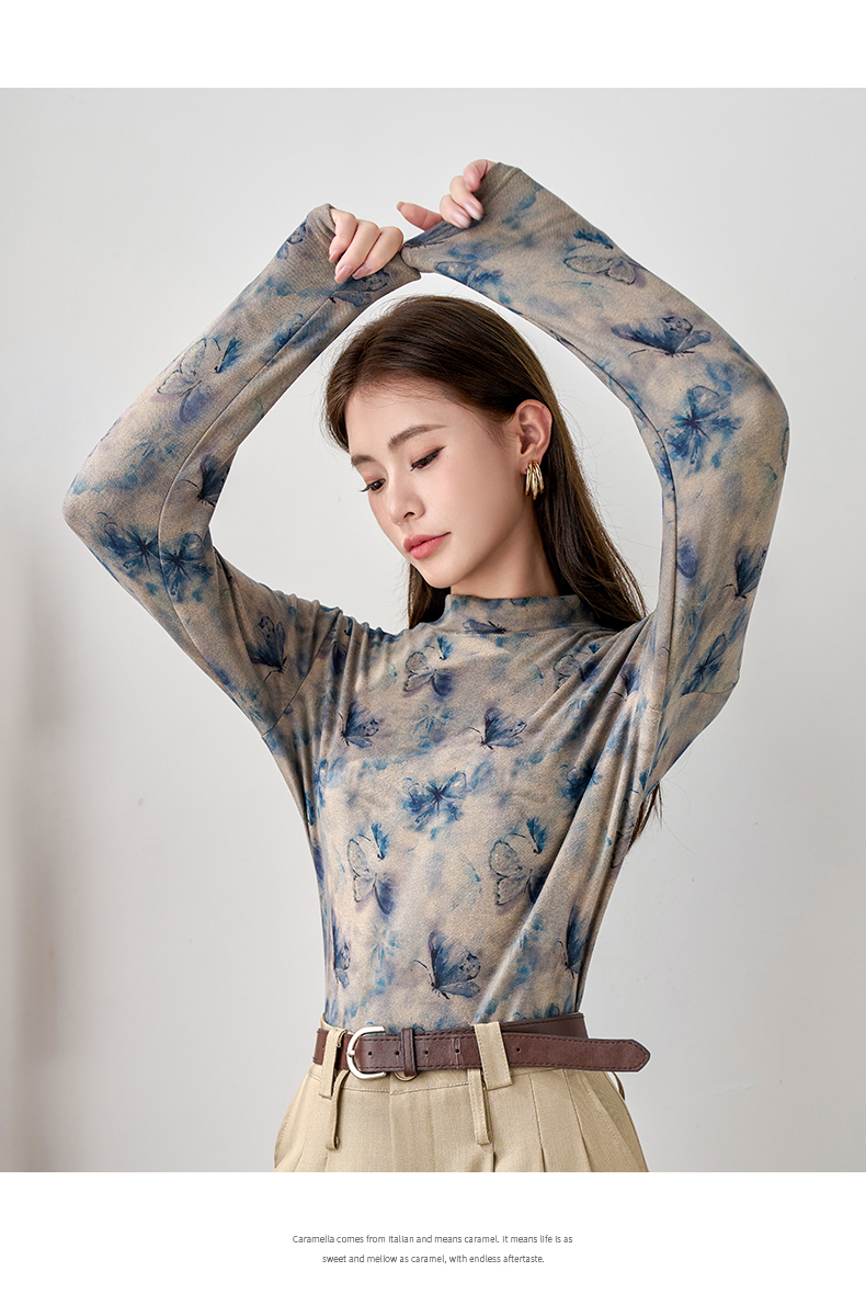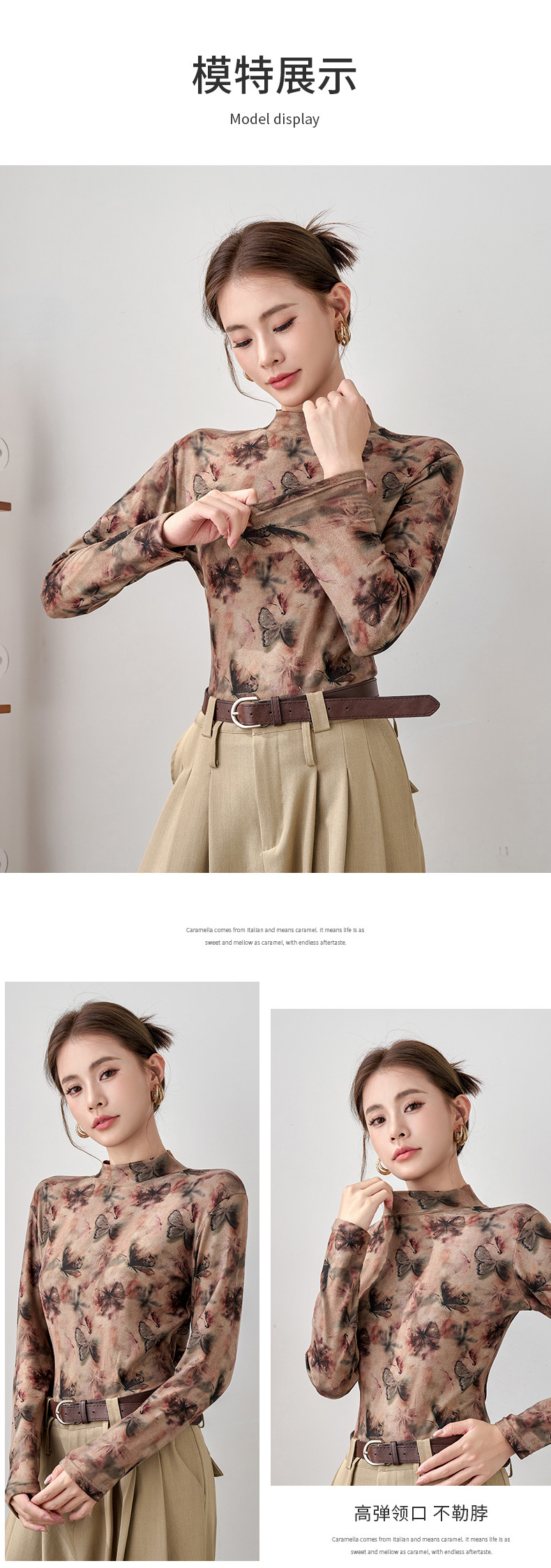水墨风印花新中式打底衫百搭女士秋季薄款修身柔软优雅