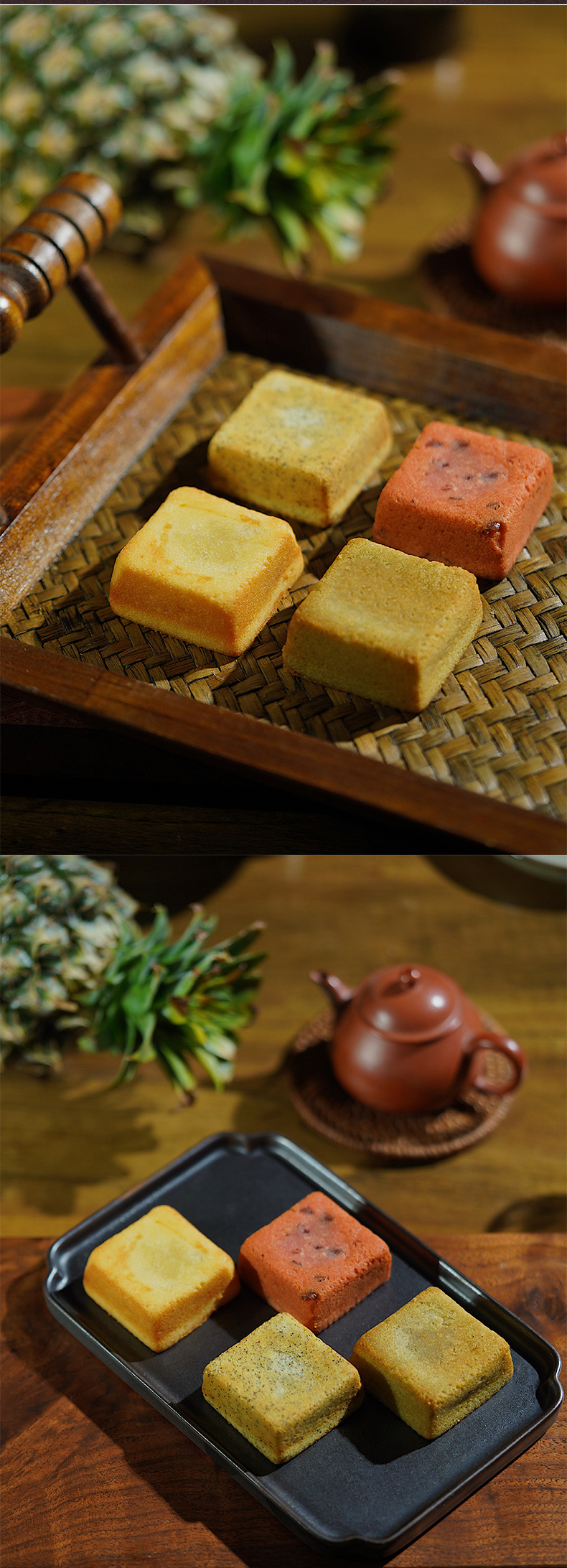 口味:蛋糕凤梨酥、草莓荔枝酥、红茶龙眼酥、铁观音凤凰酥