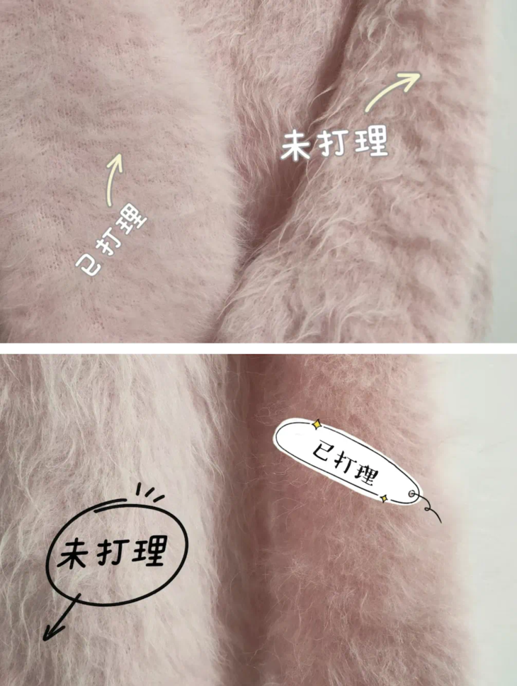 【醒绒】运输途中拉绒款的绒毛会有倒绒的情况,大家收到后可以先醒绒:
