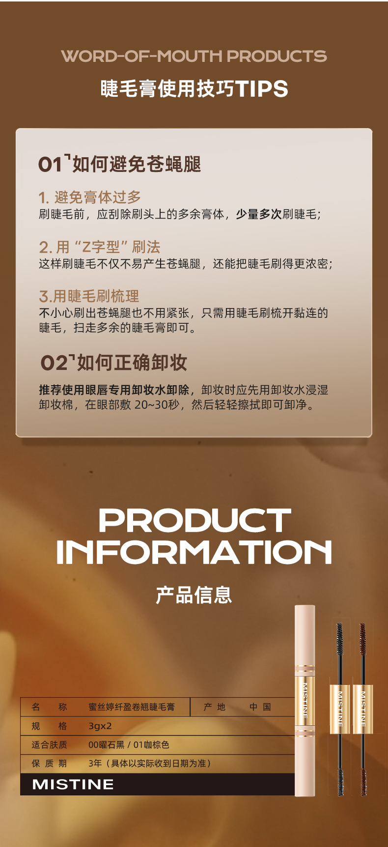 (双头睫毛膏)MISTINE蜜丝婷 双头睫毛定型打底膏 睫毛膏 女纤长 卷翘 浓密不晕染 加长加密